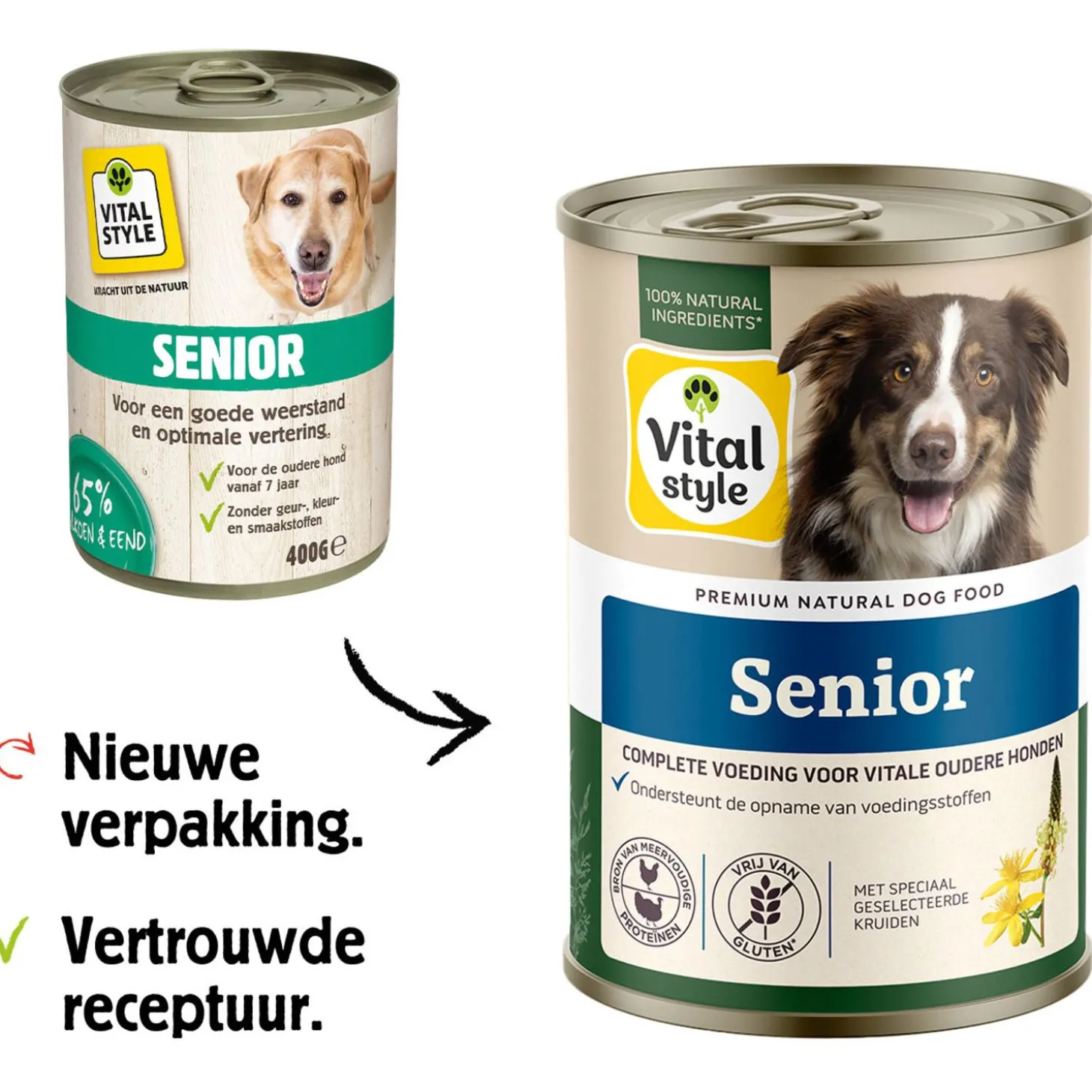SENIOR is een 100% natuurlijke voeding en bevat geen soja, granen, conserveringsmiddelen, kleurstoffen of kunstmatige aroma’s. Ook zijn er geen zouten of suikers toegevoegd.