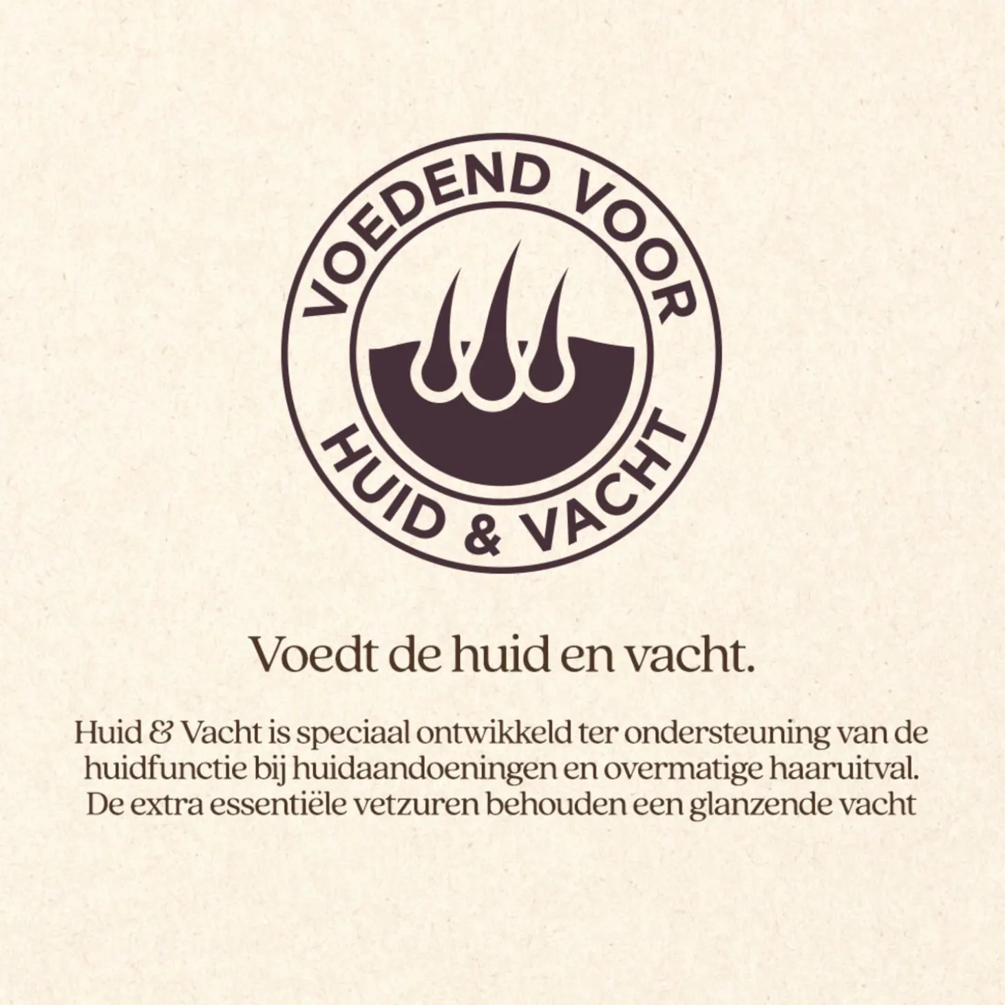 | Aanbeveling | De aangegeven hoeveelheid voer is een richtlijn voor de dagelijkse voerbehoefte van jouw hond. De individuele behoefte van jouw hond kan variëren en hangt onder andere af van activiteit, leeftijd en ras. Aangezien het belangrijk is dat uw huisdier de juiste hoeveelheid voeding krijgt, raadpleeg het etiket/verpakking voor het complete, gedetailleerde voedingsadvies.Huid & Vacht is geschikt voor volwassen honden van elk ras. Verdeel de hoeveelheid in twee maaltijden per dag. Houd de conditie van jouw hond goed in de gaten en zorg altijd voor vers drinkwater. |