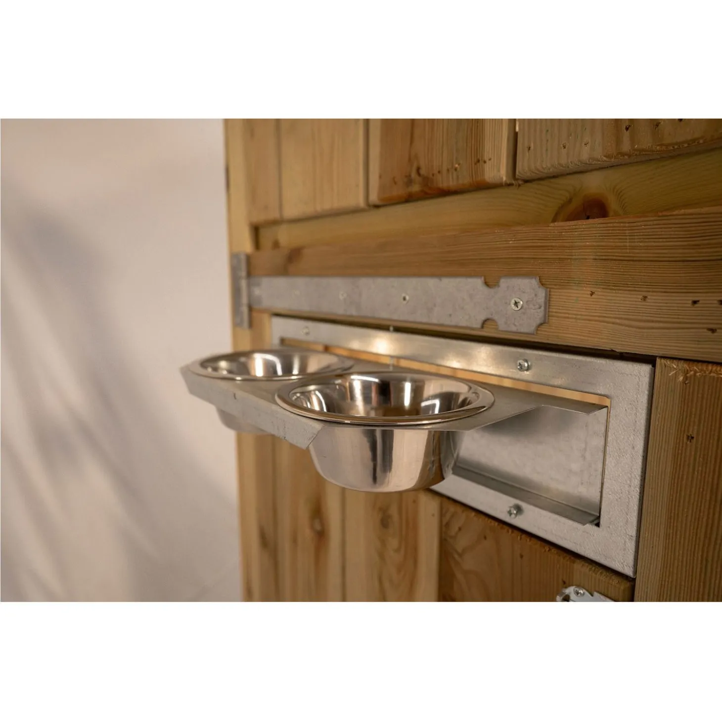 Deze volière is een echte aanwinst voor je tuin. De volière is voorzien van een grote deur, waardoor je gemakkelijk de volière in kan om bijvoorbeeld schoon te maken of je dieren te controleren. In deze deur zit een twee-baks voedersysteem. Dit systeem zorgt ervoor dat jouw veugelvrienden niet kunnen ontsnappen tijdens het voeren. In de vlucht zijn zitstokken aanwezig. Deze volière is ook gespiegeld te verkrijgen (met aan de rechterkant de deur).