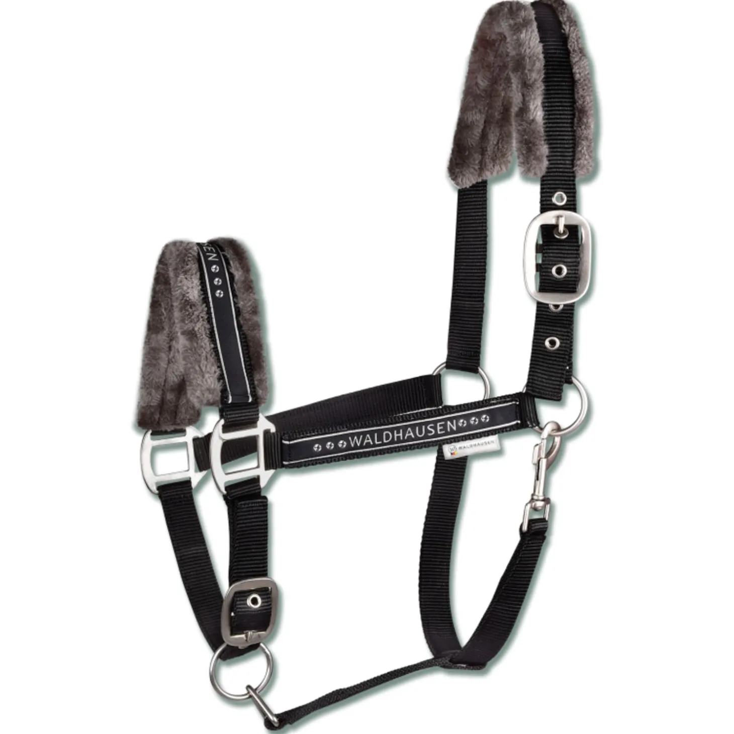 Luxe uitgevoerd halster met zacht synthetisch bont op de drukplekken en subtiele steentjes op de neusband. Verstelbaar op de kinband en het kopstuk.