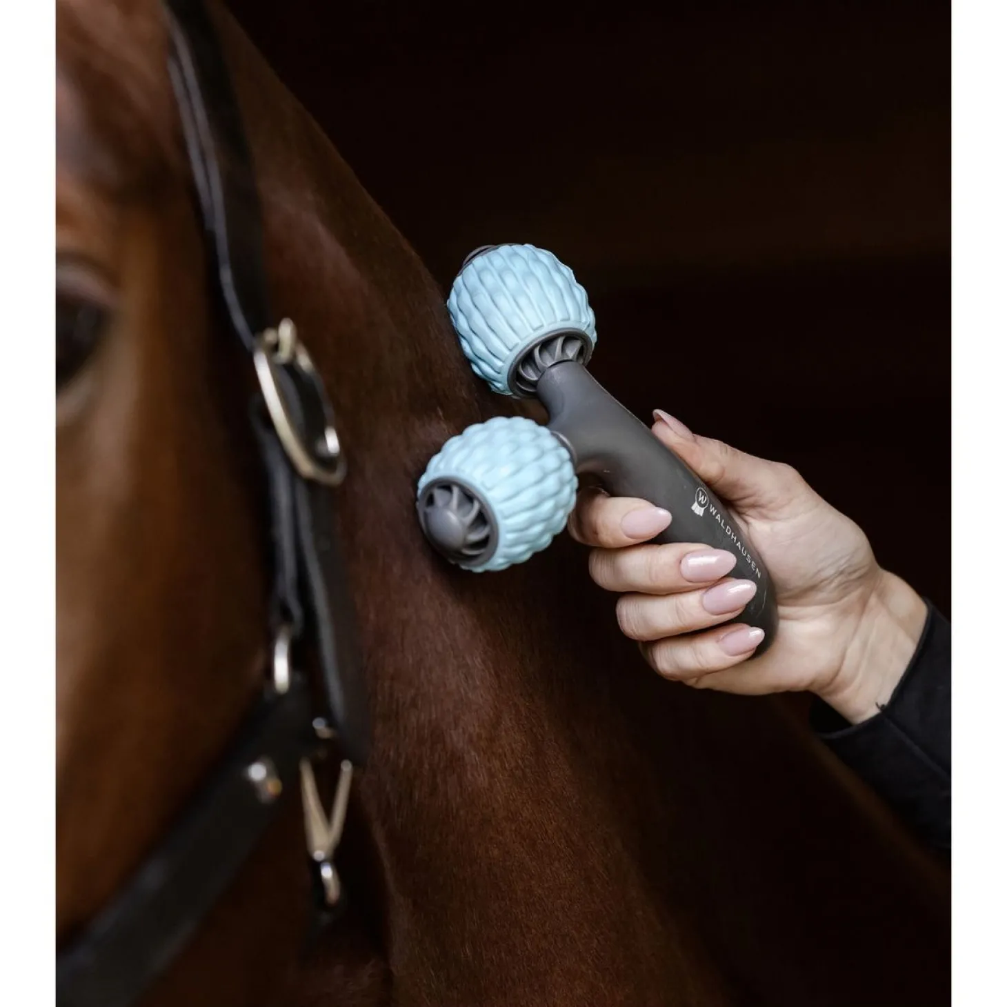 De Waldhausen Health + Care massagetool geeft je paard een effectieve en ontspannende behandeling zonder ingewikkelde apparatuur. Met het ergonomische handvat kun je comfortabel en veilig werken aan de spieren van je paard. De blauwe massagerollen zijn speciaal ontworpen voor de grotere en zachtere delen van het paardenlichaam, waardoor spanningen direct verlicht worden. Deze massage bevordert niet alleen de bloedsomloop maar versterkt ook de band tussen jou en je paard. Voor en na intensieve trainingen zorgt deze tool ervoor dat je paard zich optimaal kan herstellen en ontspannen, wat bijdraagt aan het algemene welzijn.