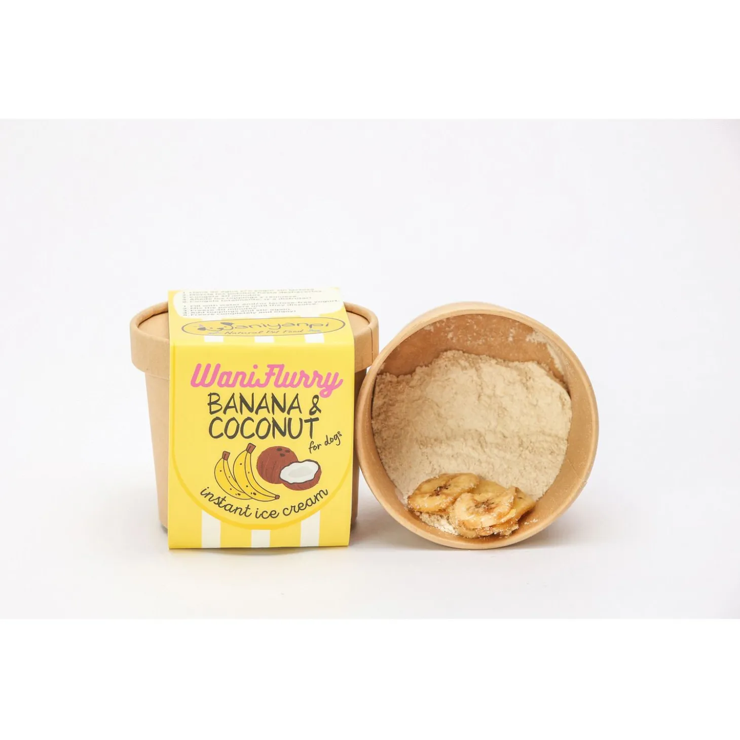 De Waniyanpi Waniflurry Banaan & Kokosnoot is gemaakt van een mix van haver- en rijstplantaardige poedermelk met een vleugje vanille. Deze mix is rijk aan voedingsstoffen en zorgt voor een romige en smaakvolle ijscrème. De topping is gemaakt van banaan en kokosnoot en geeft het ijsje een extra lekkere smaak en textuur.Maar dat is nog niet alles – met 8 verschillende smaken om uit te kiezen, is er voor elke hond wat wils. Probeer ze allemaal en ontdek de ultieme verfrissing voor je harige vriend!
