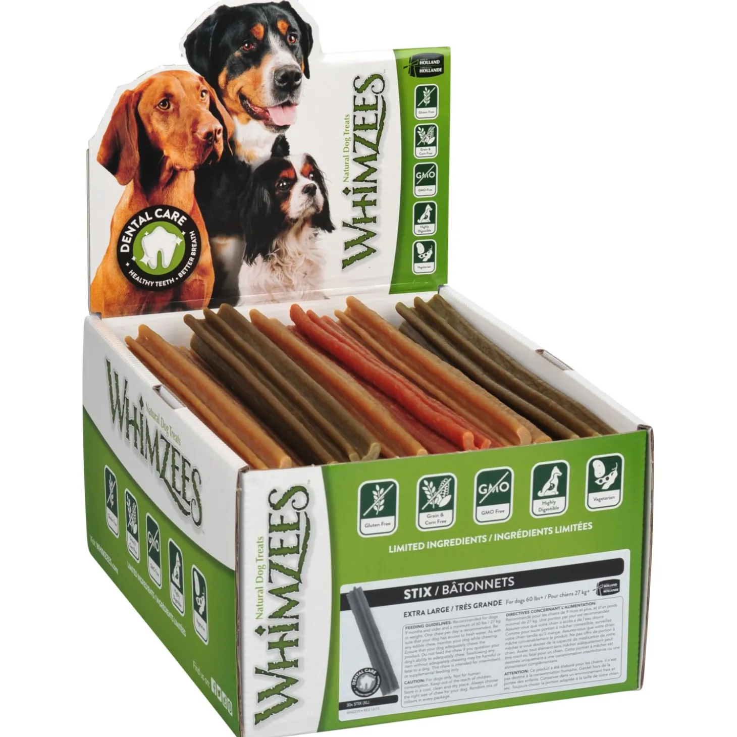 Een gezonde hond heeft een gezond gebit nodig. Het gebit bestaat uit kleine snijtanden, scherpe hoektanden en sterke kiezen. Een gebit dat niet wordt verzorgd kan lijden tot tandplak, tandsteen en ontstekingen aan het tandvlees. Met Whimzees Kauwsnacks Stix zorg je voor een gezond gebit en krijgt je hond een verantwoord tussendoortje.