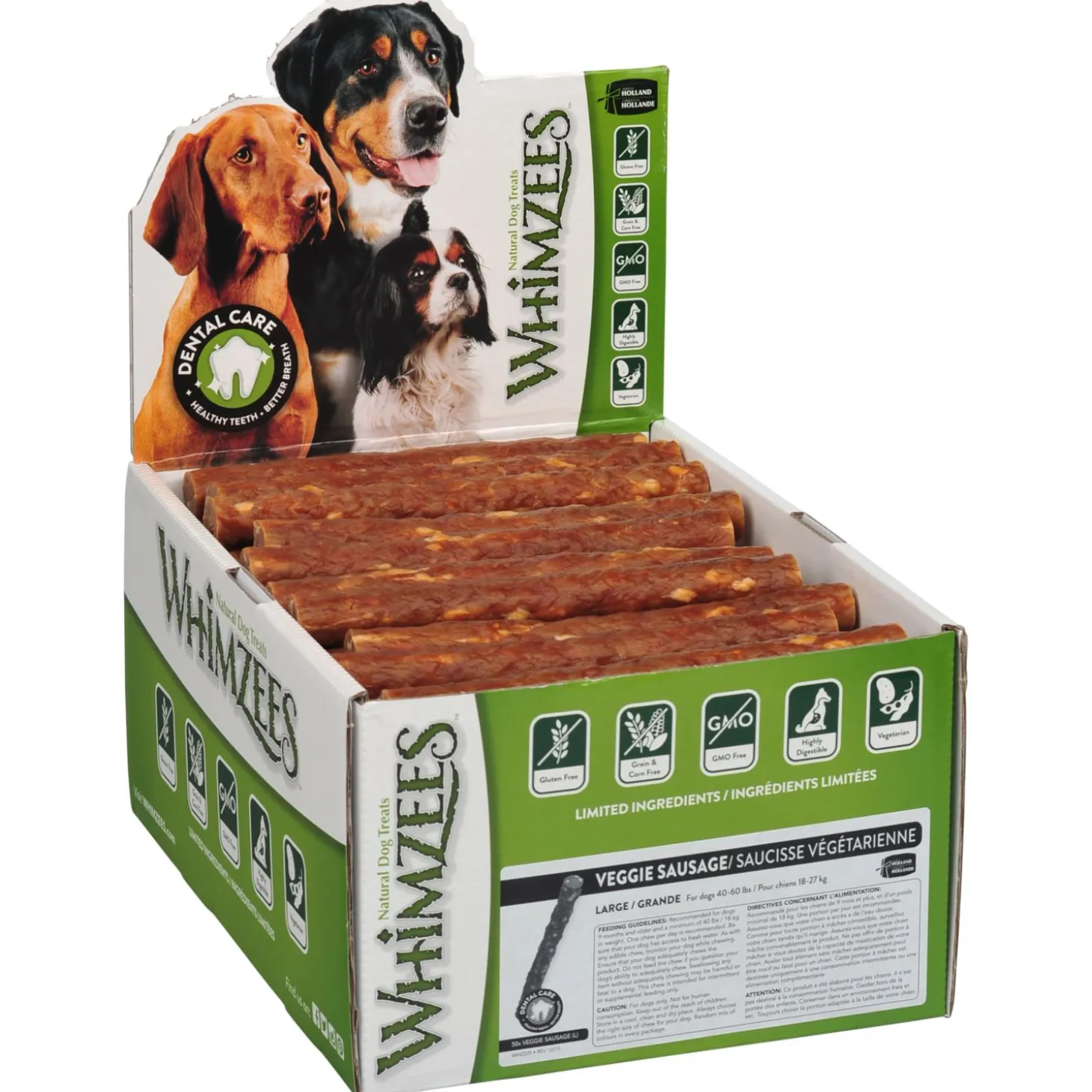 Een gezonde hond heeft een gezond gebit nodig. Het gebit bestaat uit kleine snijtanden, scherpe hoektanden en sterke kiezen. Een gebit dat niet wordt verzorgd kan lijden tot tandplak, tandsteen en ontstekingen aan het tandvlees. Met Whimzees Kauwsnacks zorg je voor een gezond gebit en krijgt je hond een verantwoord tussendoortje.