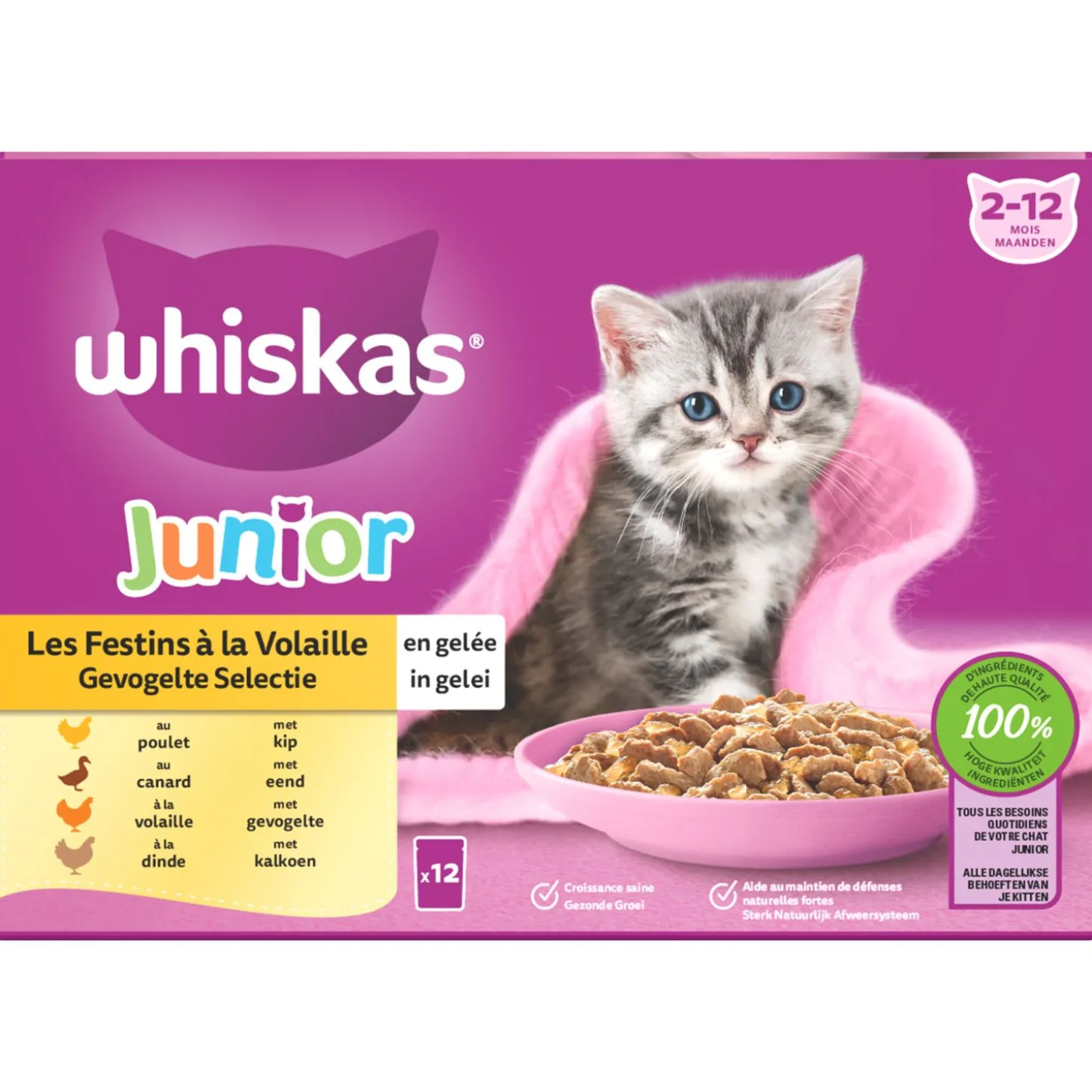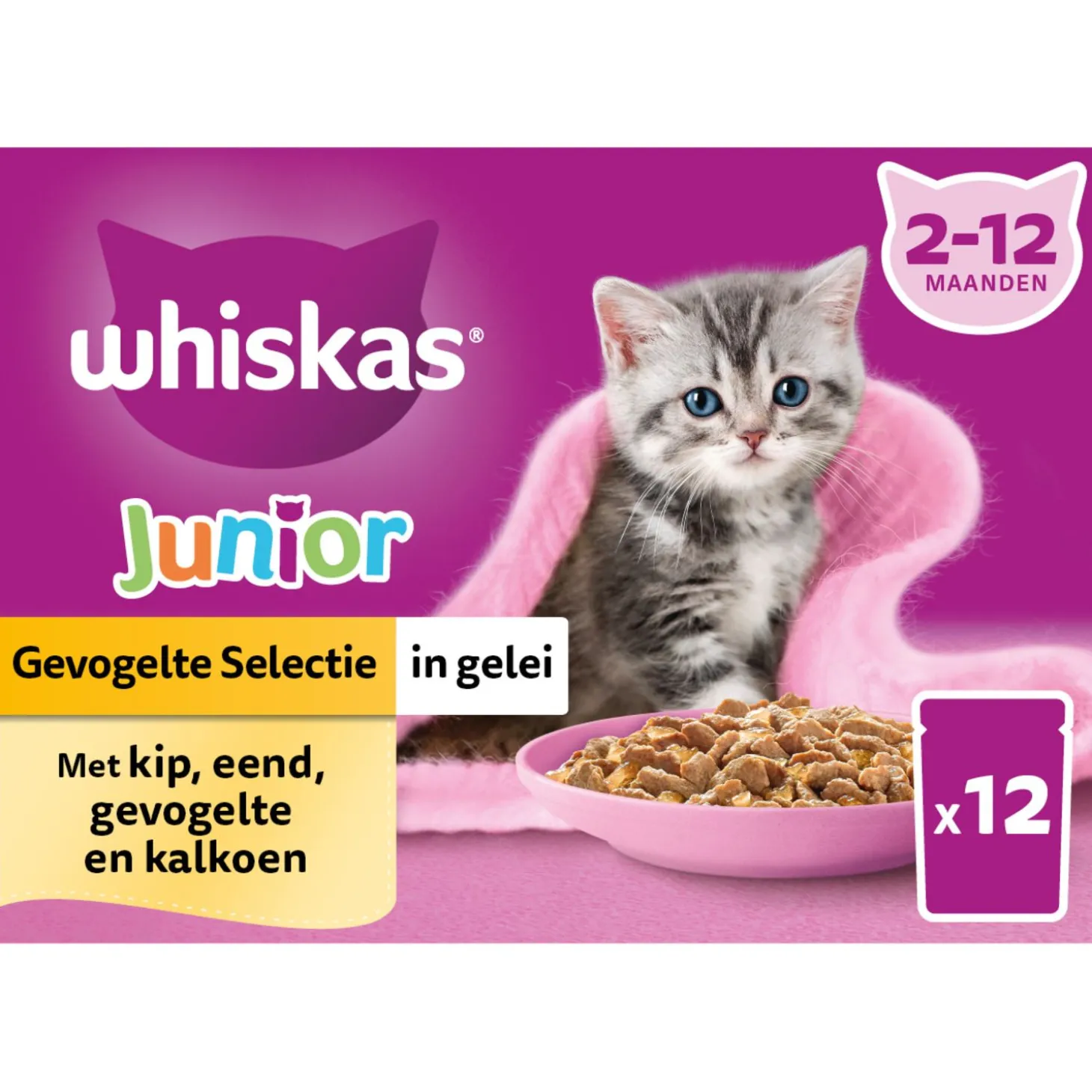 Whiskas Junior Natvoer- Gevogelte Selectie in Gelei