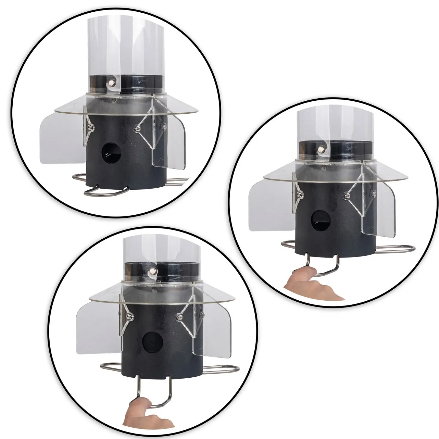 - Voedersilo met hoge capaciteitMet veren verzwaard om te voorkomen dat eekhoorns en grotere vogels bij het voer kunnen komenScheidingen tussen openingen voorkomen dat ze aangrenzende openingen bereikenMetalen constructie voor duurzaamheid