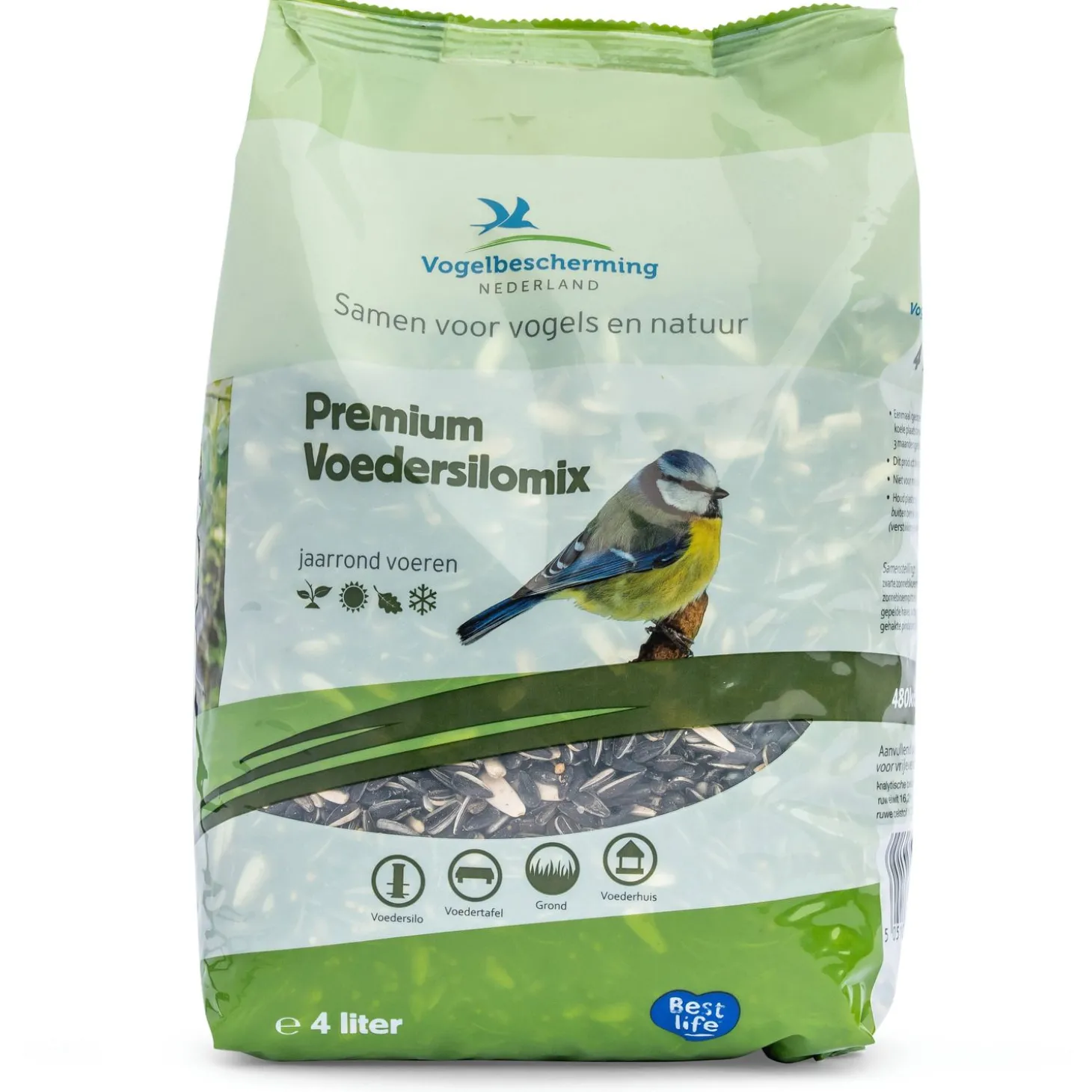 | Samenstelling | VBN Premium Voedersilomix 1,75L is een ideaal voer voor in een voedersilo. Op deze manier kunnen uw klanten voer voor langere tijd aanbieden en blijft het vers onder alle weersomstandigheden. Deze mix is geliefd bij vogels die op een silo komen eten zoals koolmezen, pimpelmezen, huismussen, ringmussen, vinken, kepen en groenlingen. |