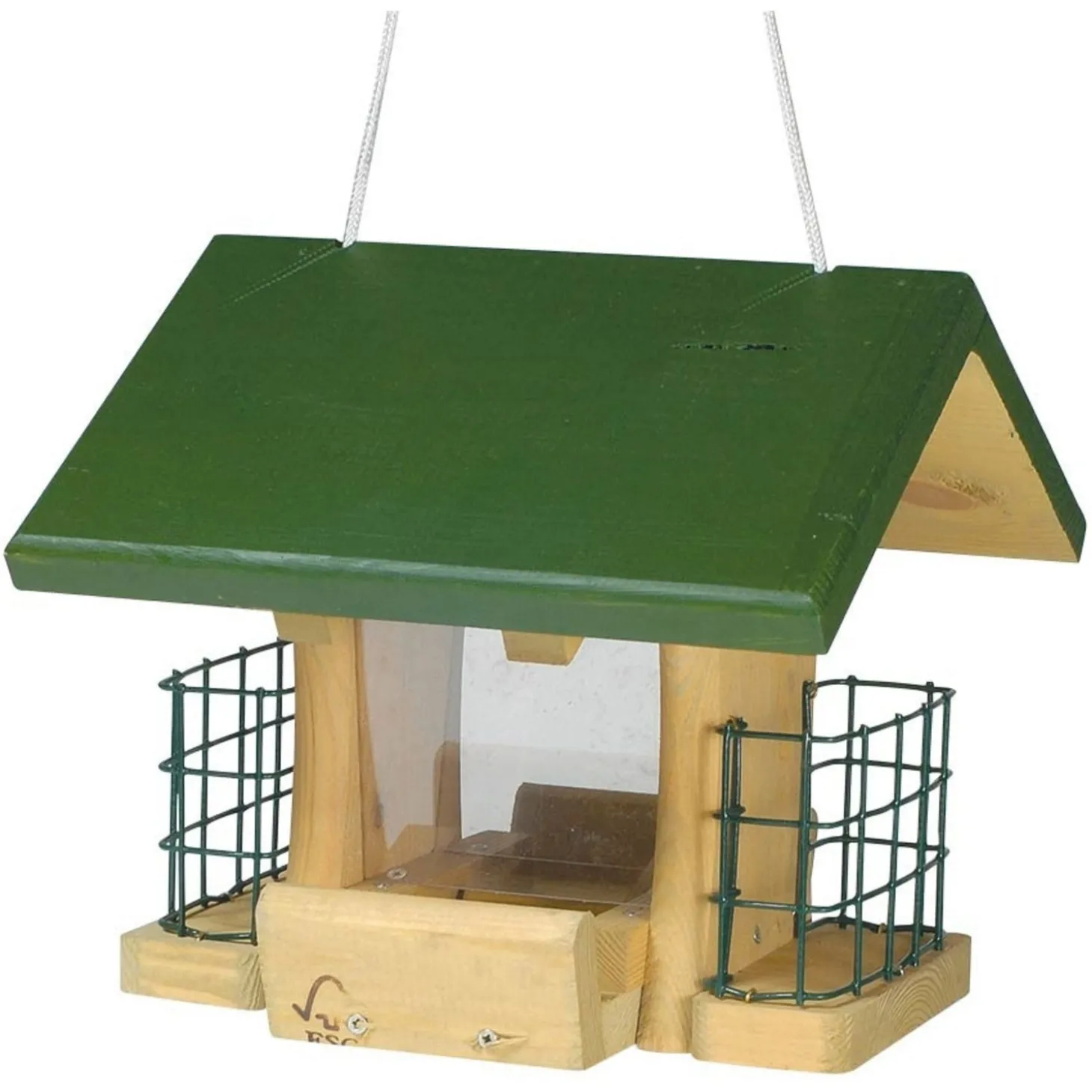 - Hangende voerhouder voor zaden en blokken pindacake Geschikt voor 2 x vierkante pindacake van 300 gram en heeft een centrale ruimte voor zadenmengsels.Een geweldige manier om zowel zaden als vet aan te bieden in dezelfde voerhouder