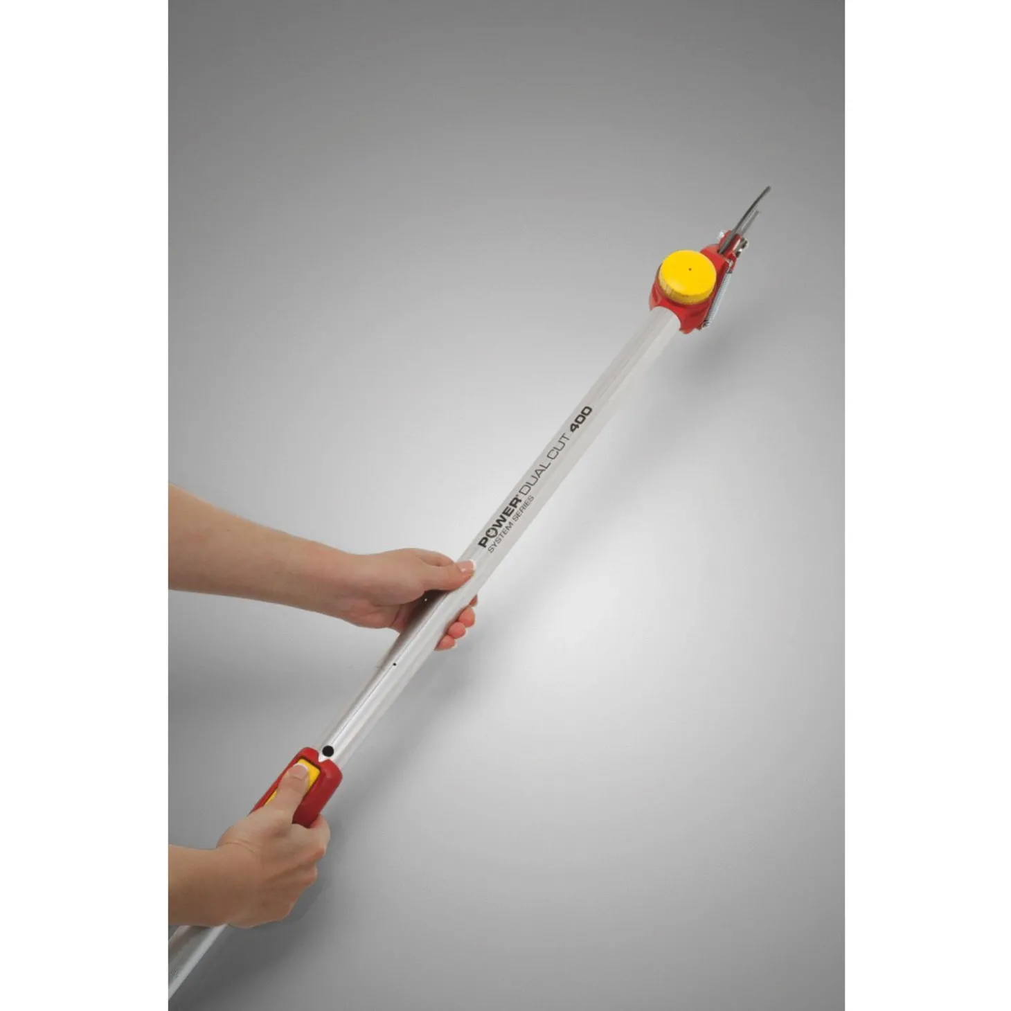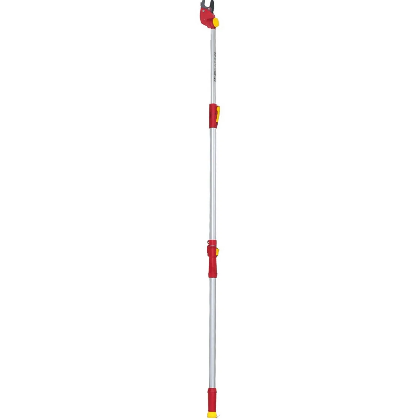 De Boomknipper is instelbaar van 240 tot 400 cm waarmee je tot wel 5,5 meter hoog takken kunt knippen tot 32 mm dik.