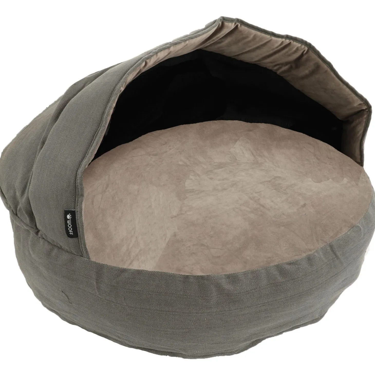Een lekker warm holletje voor je pluizenbolletje. Dat is de Wooff Mand Cave! Dankzij de overhangende flap heeft je hond een plek waar hij zich kan terugtrekken en kan opwarmen. De mand is gemaakt van zacht materiaal waar je hond heerlijk in weg kan dromen, ideaal voor honden met een dunne vacht.