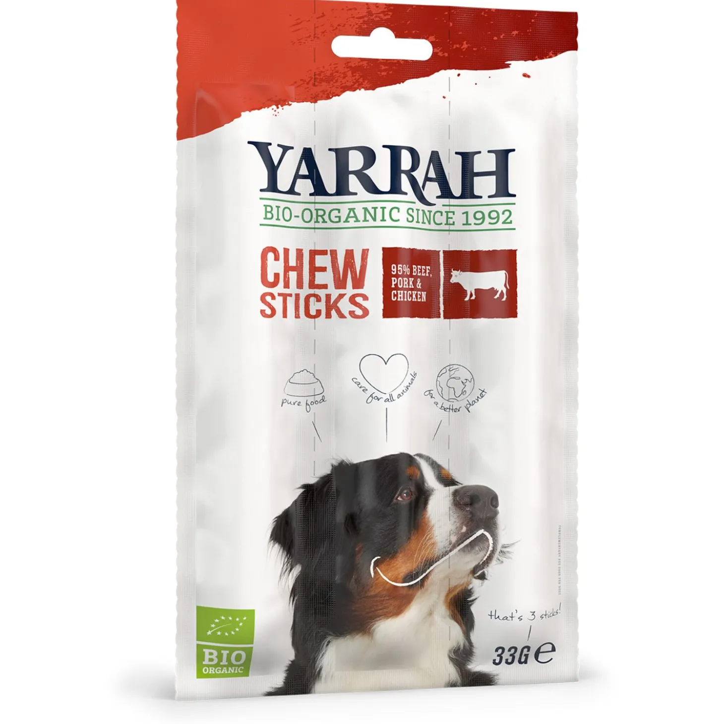 Tip: de Biologische Kauwstaafjes zijn ook heerlijk te combineren of af te wisselen met Adult Hondenvoer met Kip, Chunks met Kip en Rund 405 g en Paté met Kip en Kalkoen 150 g van Yarrah.