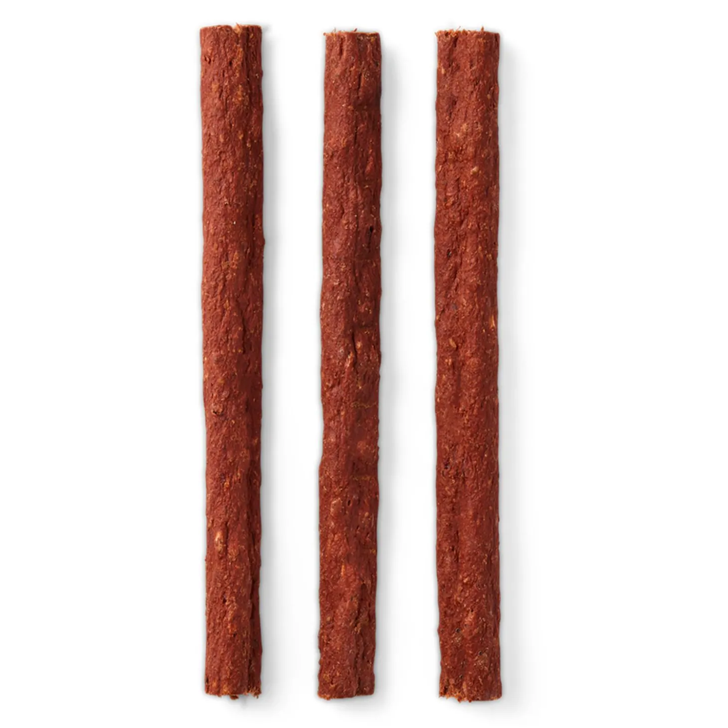 De staafjes bevatten biologisch vlees (95%) en enkel zuivere ingrediënten, dus geen chemische geur-, kleur- en smaakstoffen, pesticiden en GMO. Ze zijn geschikt voor alle honden, van puppy tot senior.