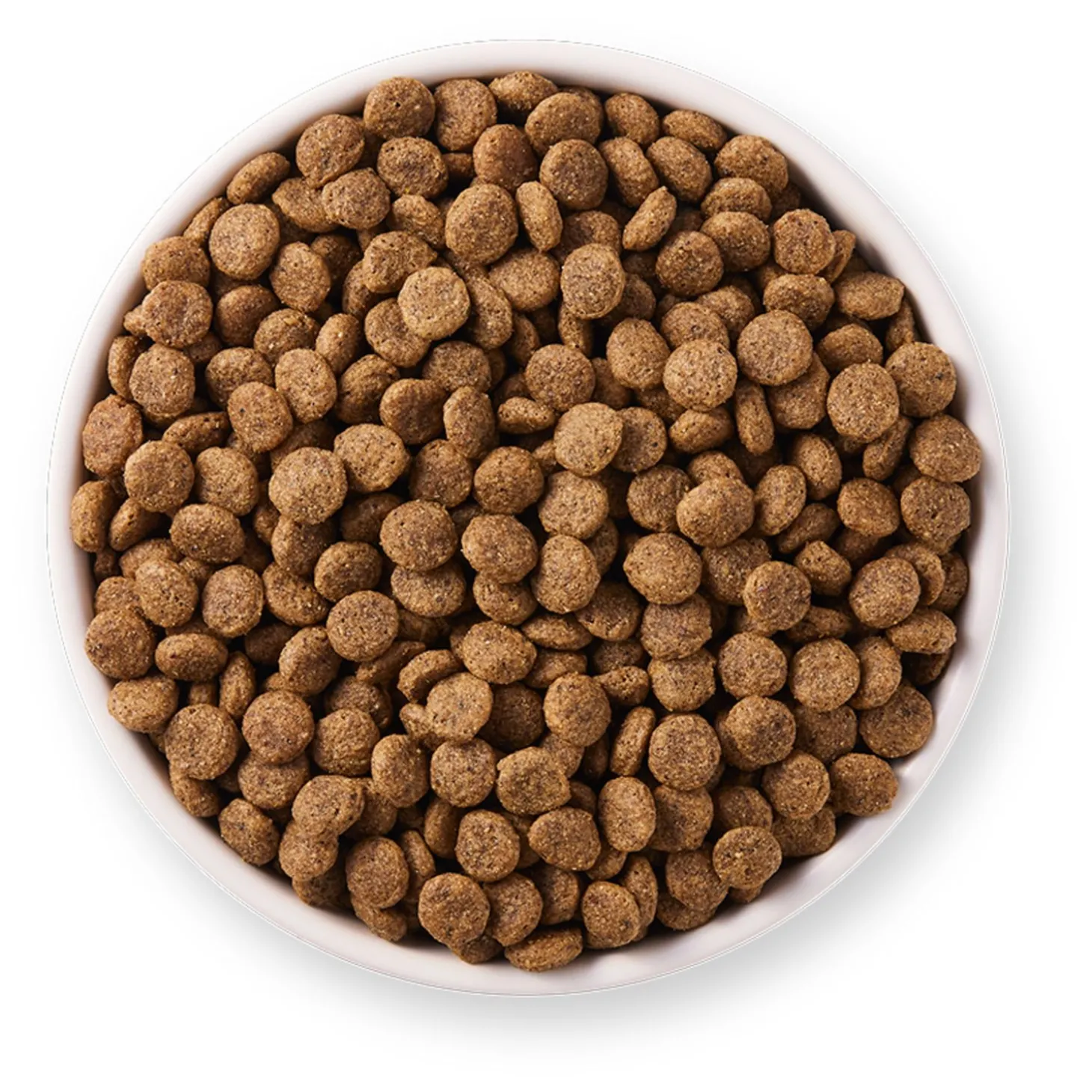 | Samenstelling | Gedroogde kip*(18%), tapioca*, groene erwten*,gele erwten*, sojabonen*, rijsteiwit*,zonnebloemzaadschillen*, biergist, gedroogdeMSC haring1 , baobab*, kippenvet*, miner-als, gedroogd zeewier*.* = biologisch.¹Uit een MSC gecertificeerde duurzame visserij (www.msc.org/nl). 95,4% van de landbouwgrondstoffen is afkomstig uit biologische landbouw. |