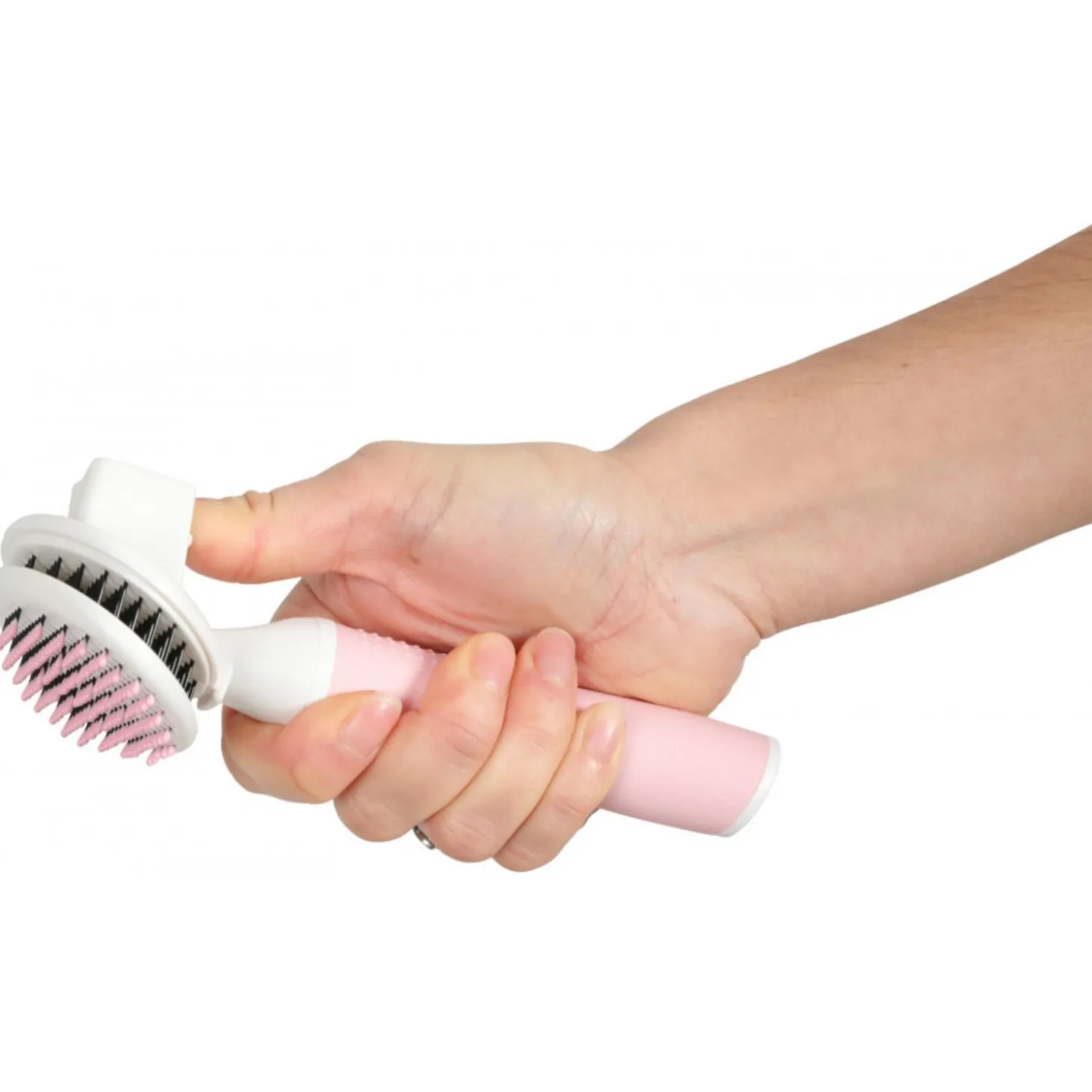 De borstel bevat roestvrijstalen pinnen met plastic dopjes en is daardoor zacht voor de huid. De slicker heeft daarnaast een ergonomisch, soft touch handvat voor extra comfort en een goede grip. Met de flexibele pinnen verwijder je eenvoudig de losse haren in de ondervacht.
