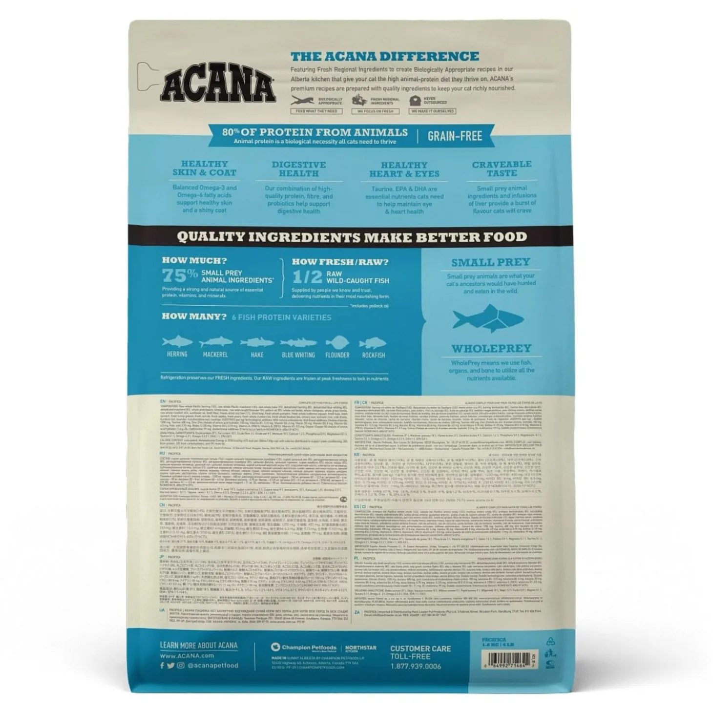 Alle vis wordt rauw of vers geleverd aan de Acana gecertificeerde keuken in Canada. In deze voeding zit altijd de beste verhouding tussen vis, botten en organen, zodat jouw poezenvriend alle voedingsstoffen binnenkrijgen die ze van nature nodig hebben.