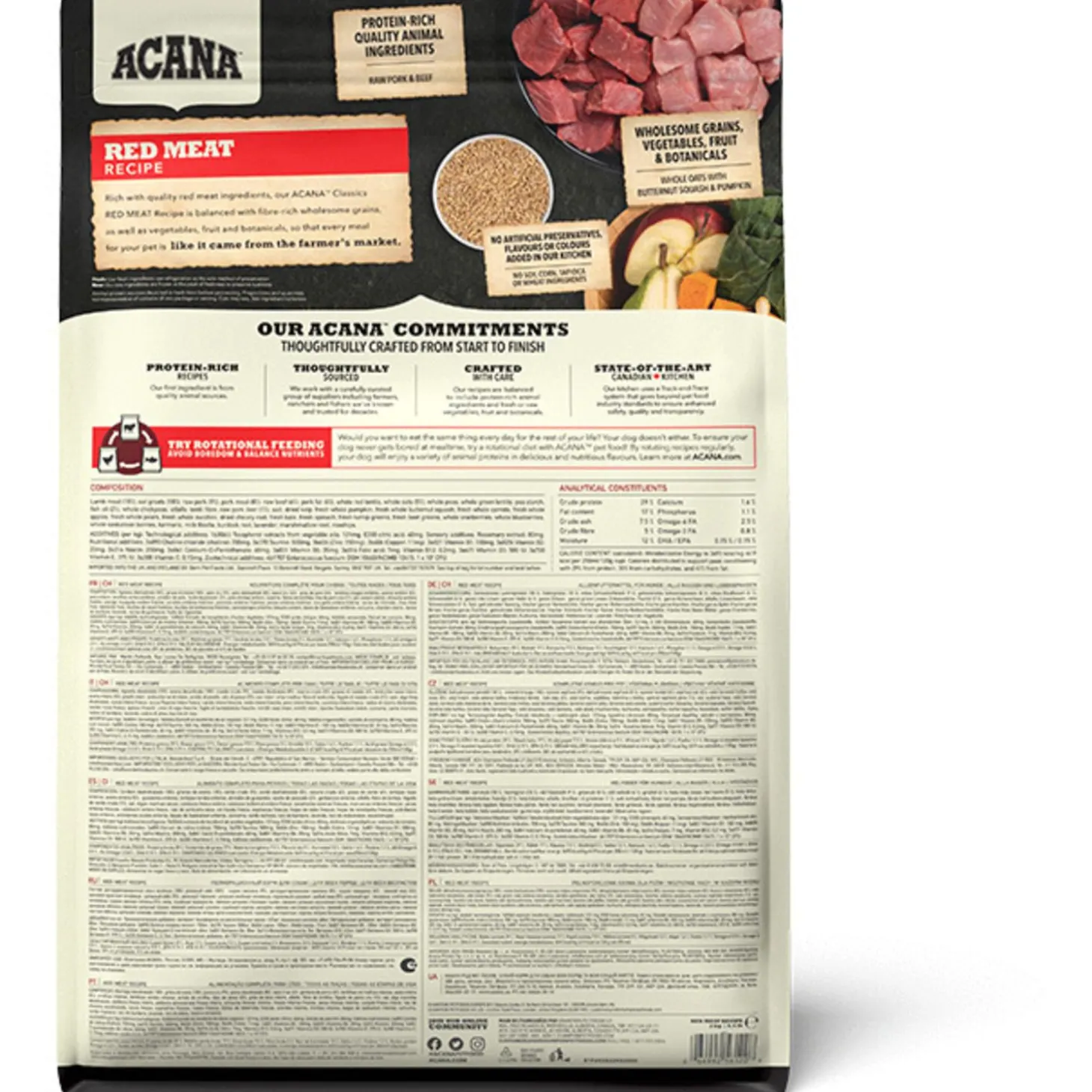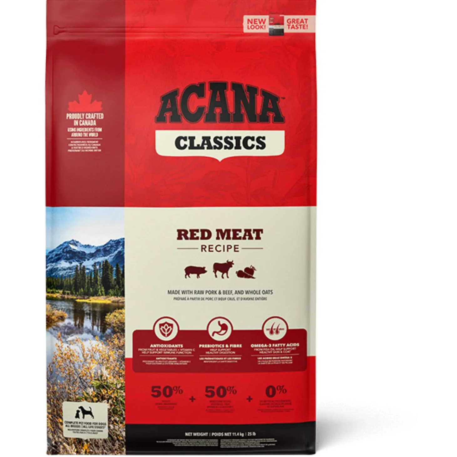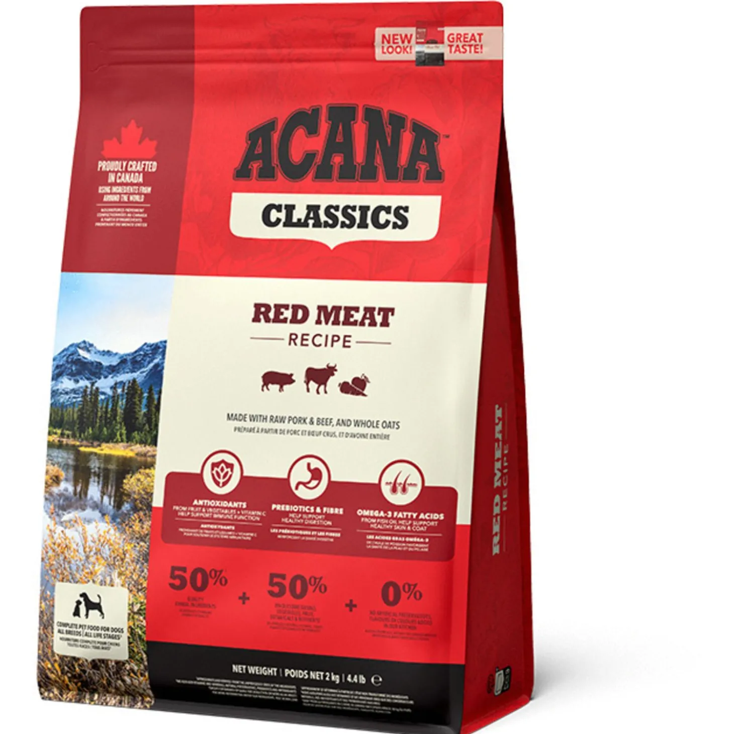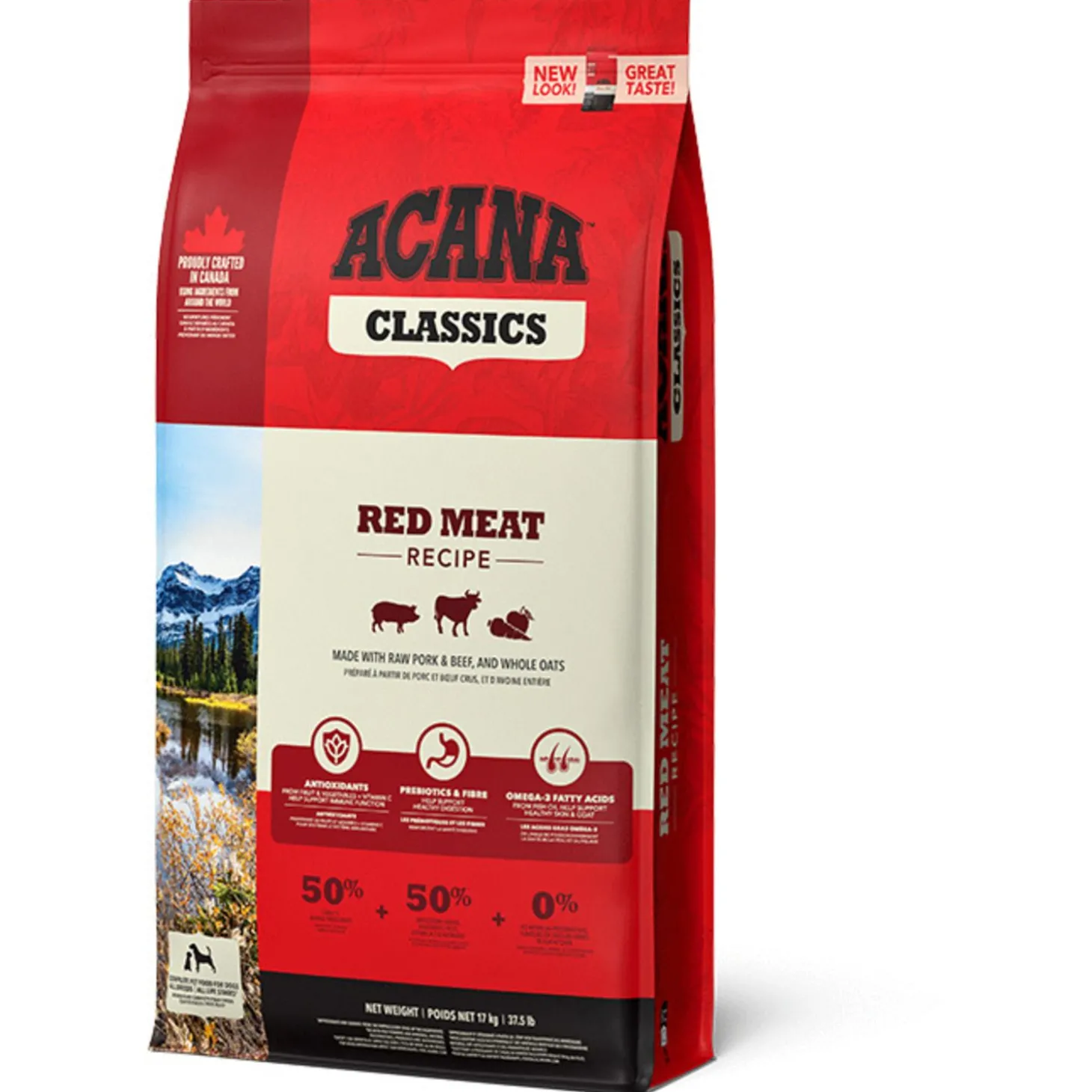 De voeding van ACANA is volgens het Biologically Appropriate-principe bereid en zit vol waardevolle voedingsstoffen voor een perfecte voeding van honden van alle rassen en leeftijden. ACANA Classics Classic Red bestaat uit 50% dierlijke ingrediënten en 50% plantaardige ingrediënten. Zij maken gebruik van glutenvrije haver voor een gelijkmatige energieafgifte.