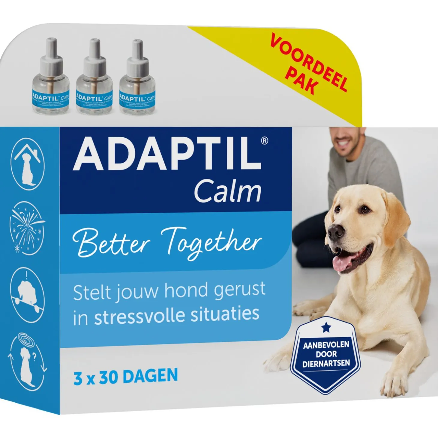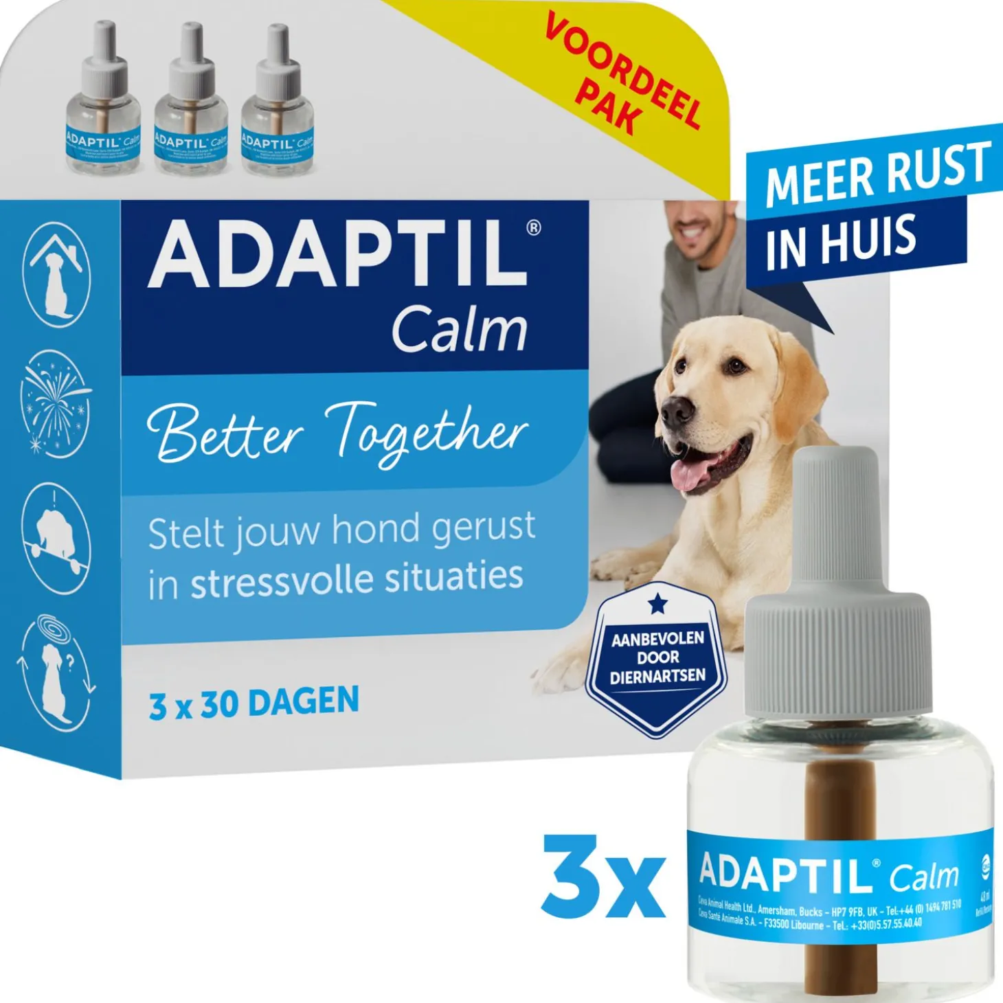 | Samenstelling | Analoog van het geruststellend feromoon (Dog Appeasing Pheromone) van de hond 2% |