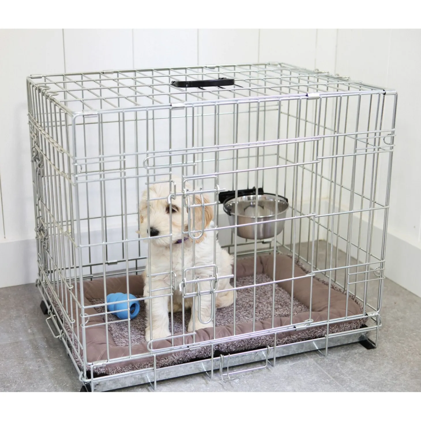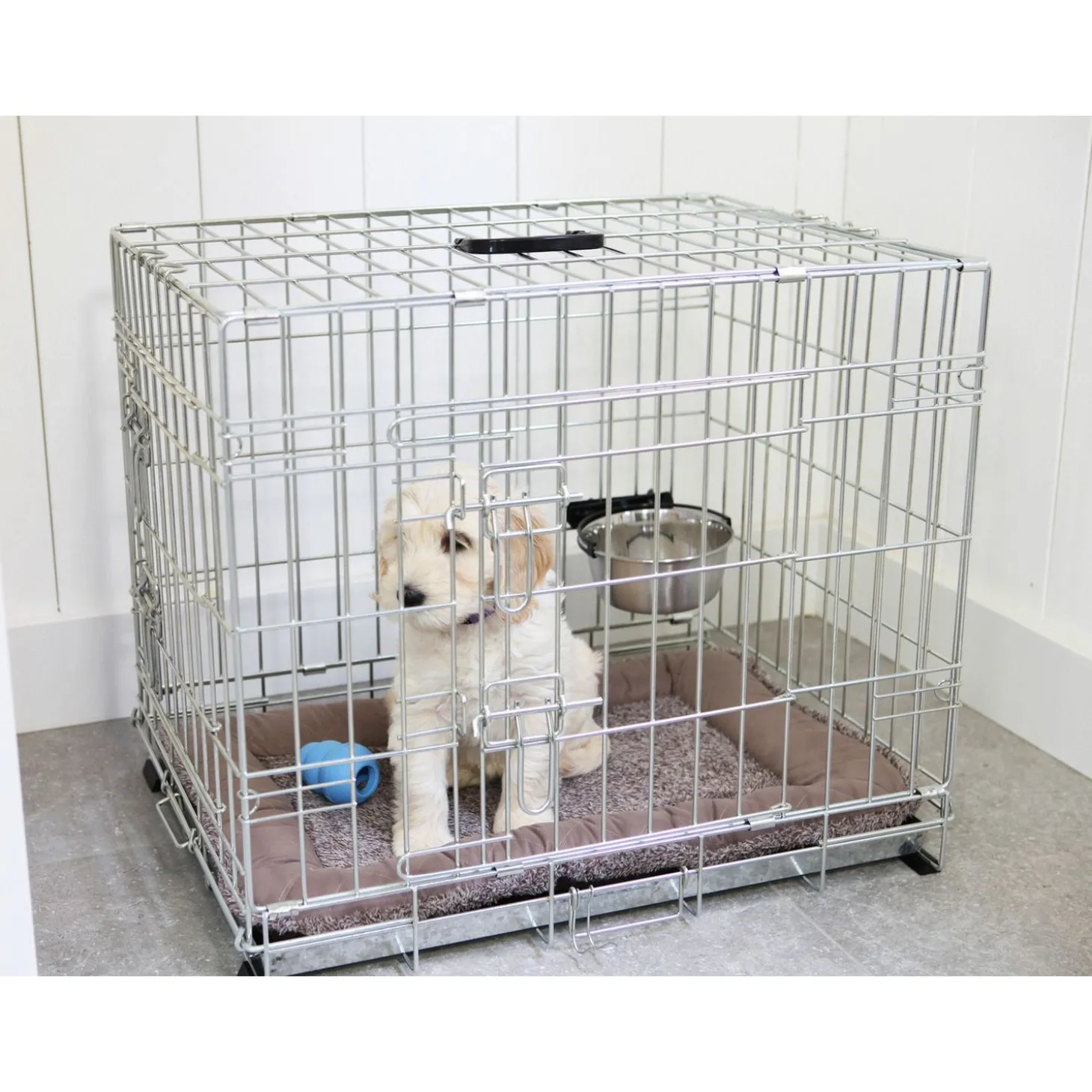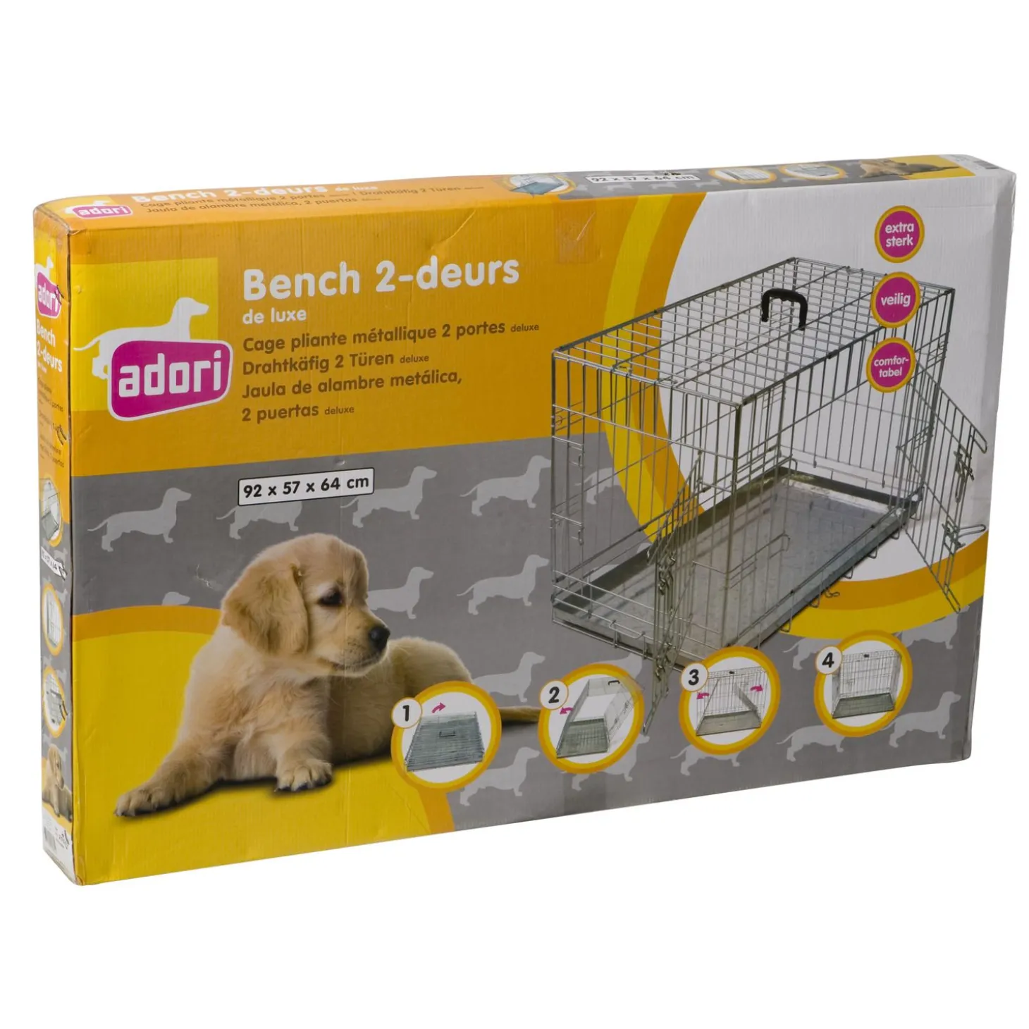 De Adori Bench 2-Deurs De Luxe Verzinkt is een praktische en comfortabele hondenbench. De bench is gemakkelijk in te klappen en weer op te zetten, zodat je deze makkelijk kunt meenemen en verplaatsen. Deze bench is uitermate geschikt voor intensief gebruik en heeft een verzinkte lade die je makkelijk uit de bench kunt halen om schoon te maken. Verder beschermt de dubbel verzinkte toplaag de bench tegen roestvorming. Met het kunststofhandvat is de bench makkelijk te verplaatsen. De Bench 2-Deurs Verzinkt is beschikbaar in vijf verschillende maten: