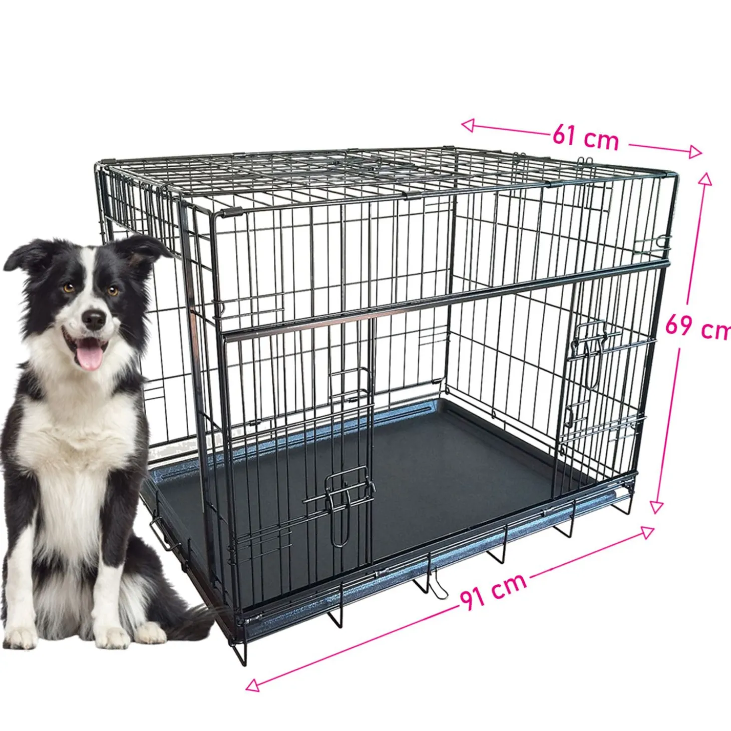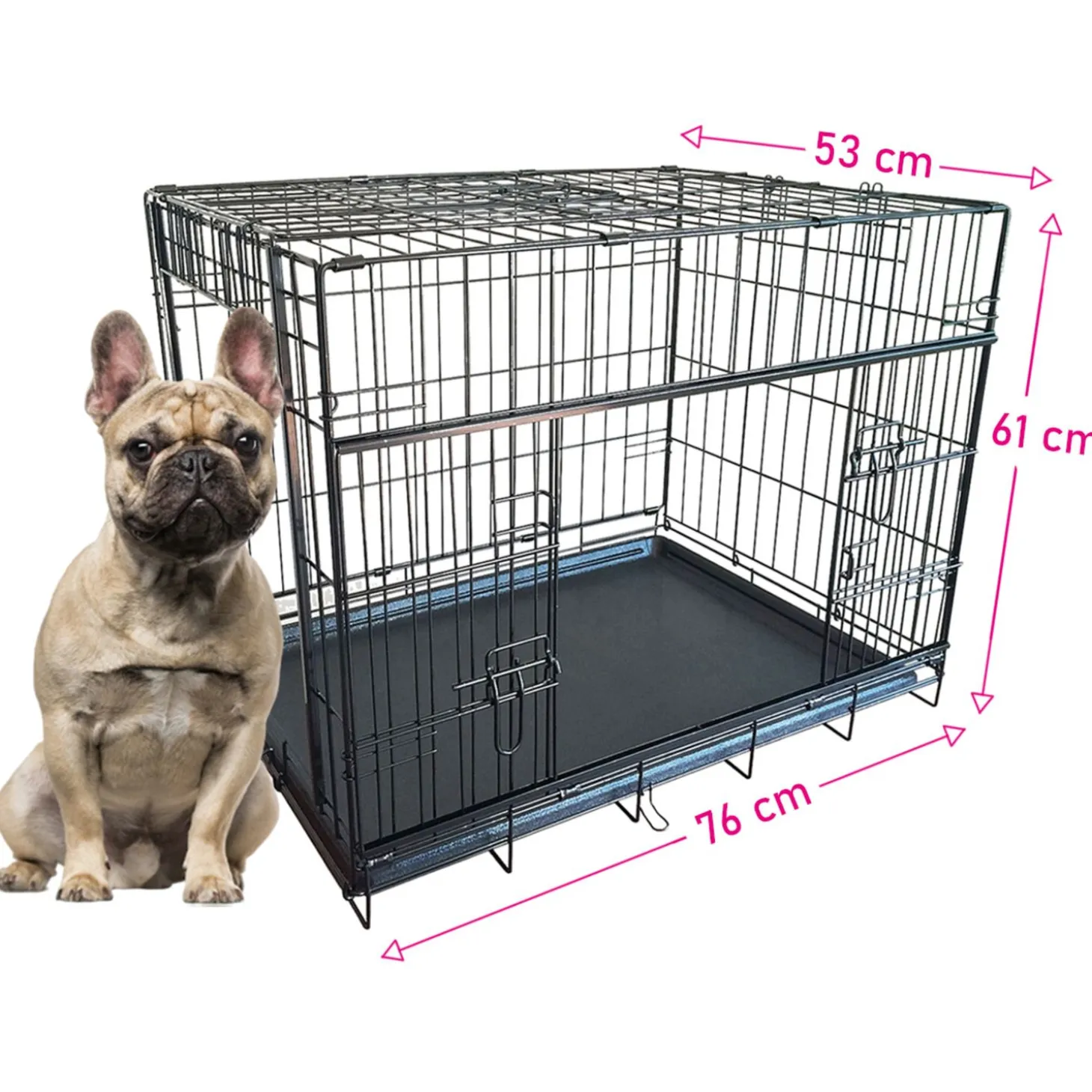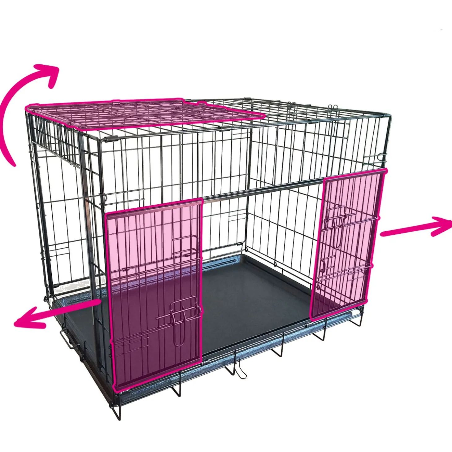 De bench is eenvoudig in te klappen en weer op te zetten, zodat je deze makkelijk kunt meenemen en verplaatsen. De bodem van de bench is een losse kunststof lade die je gemakkelijk uit de bench kunt halen om schoon te maken. Verder heeft de hondenbench afgeronde hoeken zodat je hond zich er niet aan verwondt. De poedercoated toplaag voorkomt roestvorming en het handvat maakt het verplaatsen van de bench gemakkelijk.