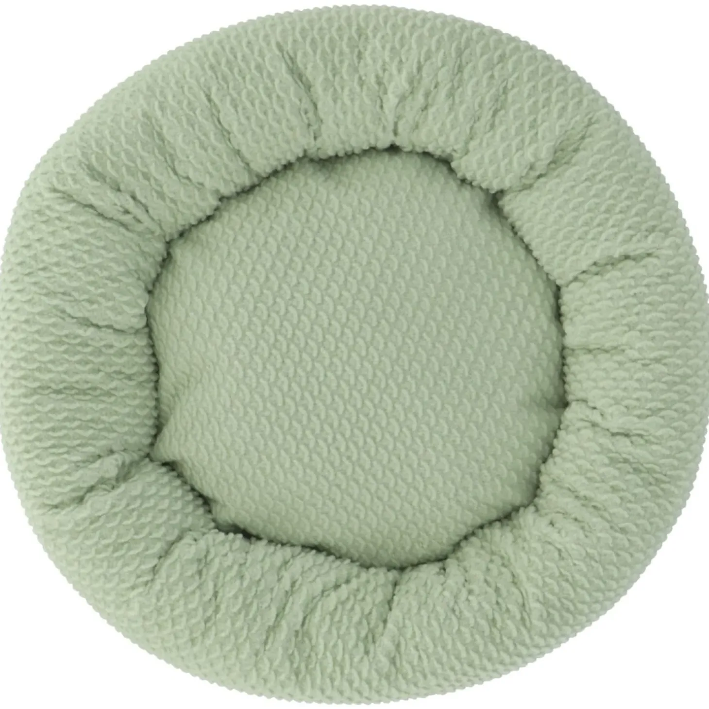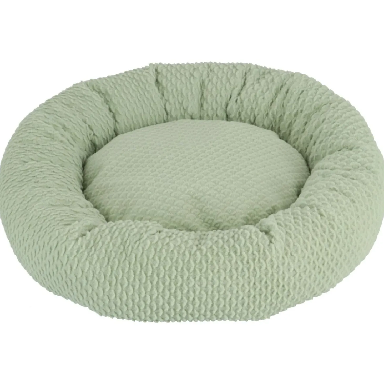 De Adori Donut Maddy kattenmand is de perfecte plek voor je kat om tot rust te komen. De kenmerkende donutvorm met opstaande rand geeft je kat een veilig en beschut gevoel, terwijl de verhoogde randen ondersteuning bieden voor hoofd en rug. Het zachte, lichtgroene materiaal met speciale wafelstructuur zorgt voor extra comfort en warmte waar katten zo van houden. De mand beschikt over een volledig wasbare hoes die je eenvoudig kunt verwijderen en in de wasmachine kunt reinigen voor optimale hygiëne. Dankzij de speciale anti-slip onderkant blijft de mand altijd stabiel op zijn plaats, zelfs wanneer je kat erin springt of zich uitrekt. Deze combinatie van praktische eigenschappen maakt de Adori Donut Maddy niet alleen comfortabel, maar ook bijzonder gebruiksvriendelijk.