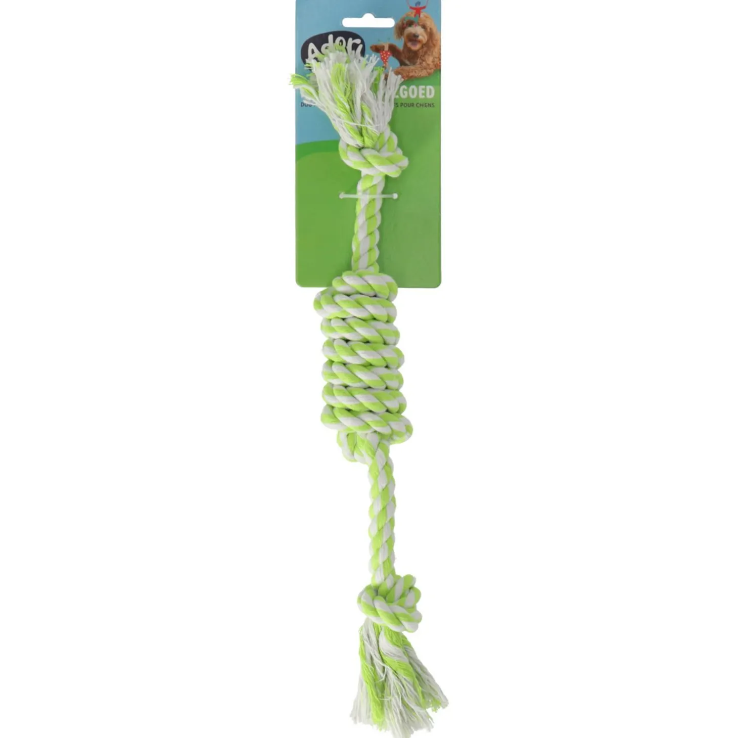 Verveel je hond nooit meer met de Adori Flostouw! Dit duurzame katoenen speeltouw is niet alleen ontzettend leuk om mee te spelen, maar werkt ook als een natuurlijke tandenborstel. Door op het touw te kauwen, verwijdert je hond tandplak en voorkomt hij tandsteen. Bovendien stimuleert het kauwen op het touw het tandvlees en draagt het bij aan een gezonde mondhygiëne. Ideaal voor honden van alle leeftijden en rassen.