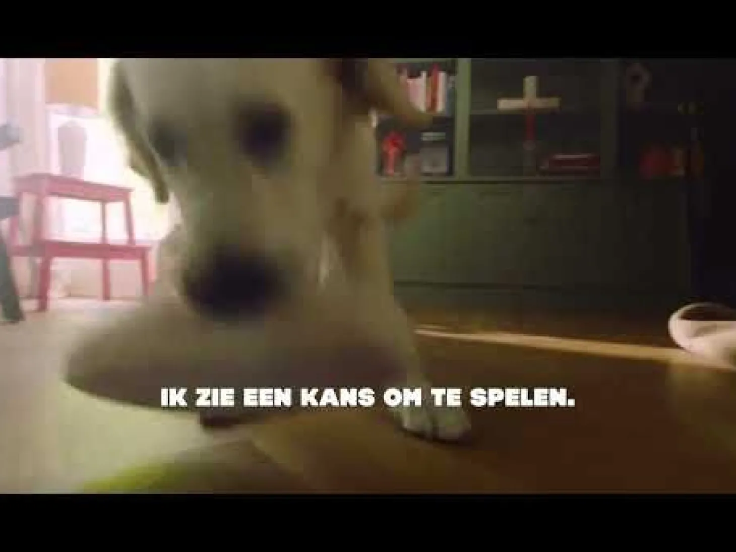 De eens is geel met een oranje snuit. Hij is gemaakt van polyester en de buitenkant is plush. Het is een erg leuk cadeau voor een dierenliefhebber die een hond heeft.