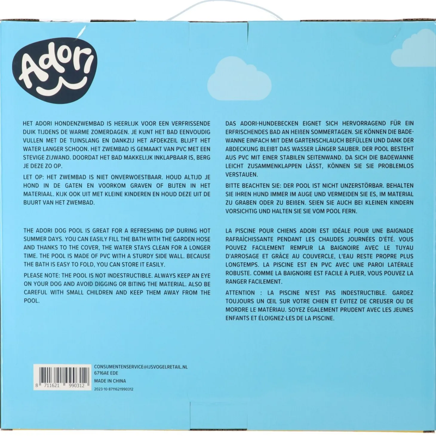 Zoek je een compact en praktisch hondenzwembad? Kies dan voor het Adori hondenzwembad! Het afdekzeil met klittenband zorgt ervoor dat het eenvoudig te bevestigen is en het water langer schoon blijft. Dankzij het opvouwbare design is het badje gemakkelijk op te bergen. Ideaal voor in de tuin, op het balkon of tijdens een kampeervakantie.