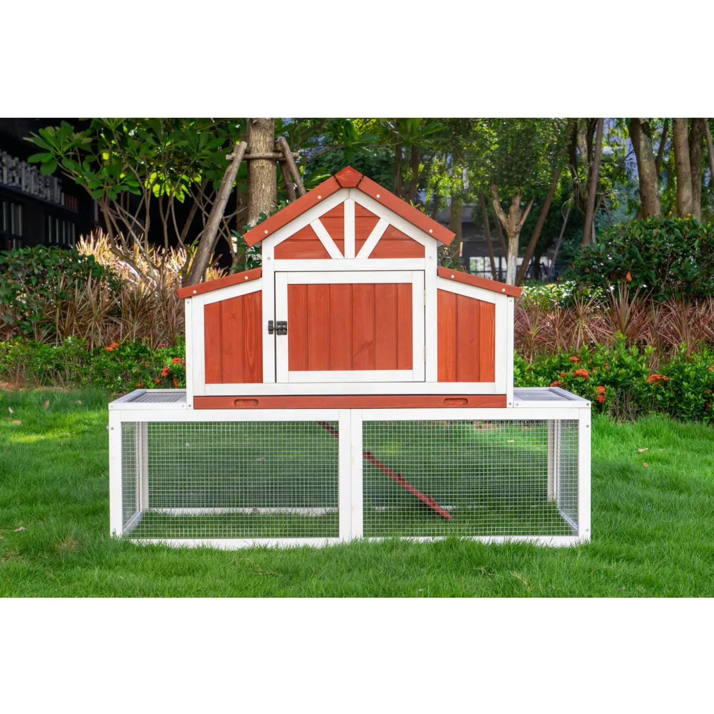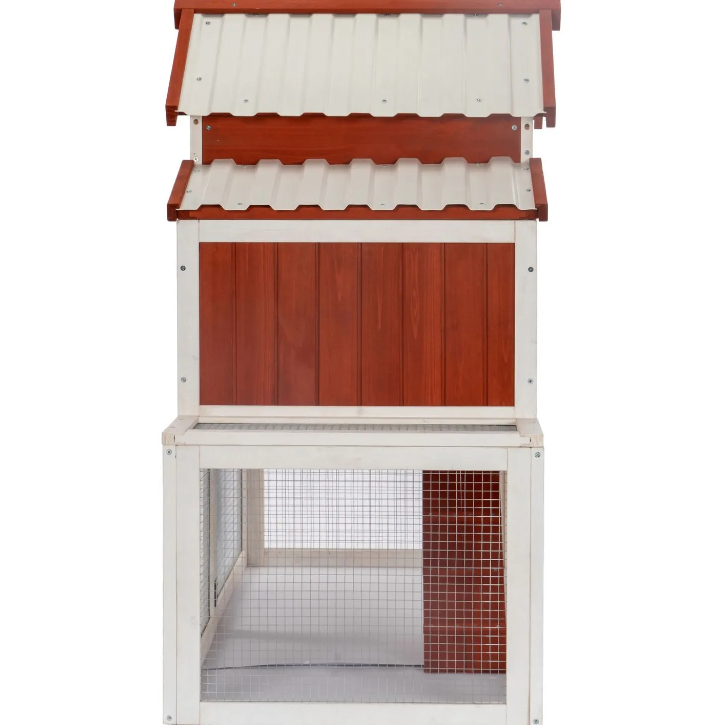 Dit buitenhok heeft twee verdiepingen die verbonden zijn met een trappetje, waardoor jouw konijnen kunnen kiezen tussen het nachthok of de ruime ren. Het bovenste gedeelte overdekt voor een groot gedeelte de ren. Konijnen zullen regelmatig overdag lekker in de tuin of in een (aangrenzende) ren moeten kunnen rennen, spelen en relaxen.