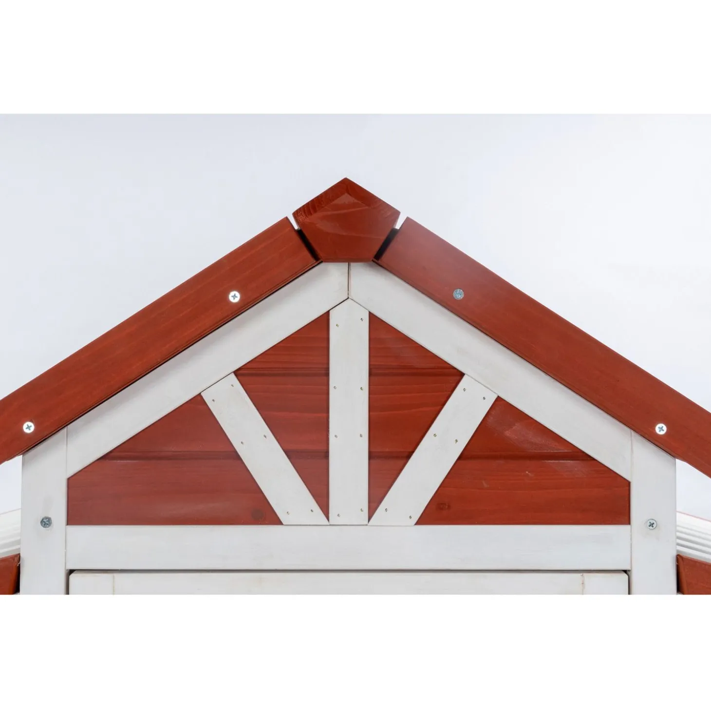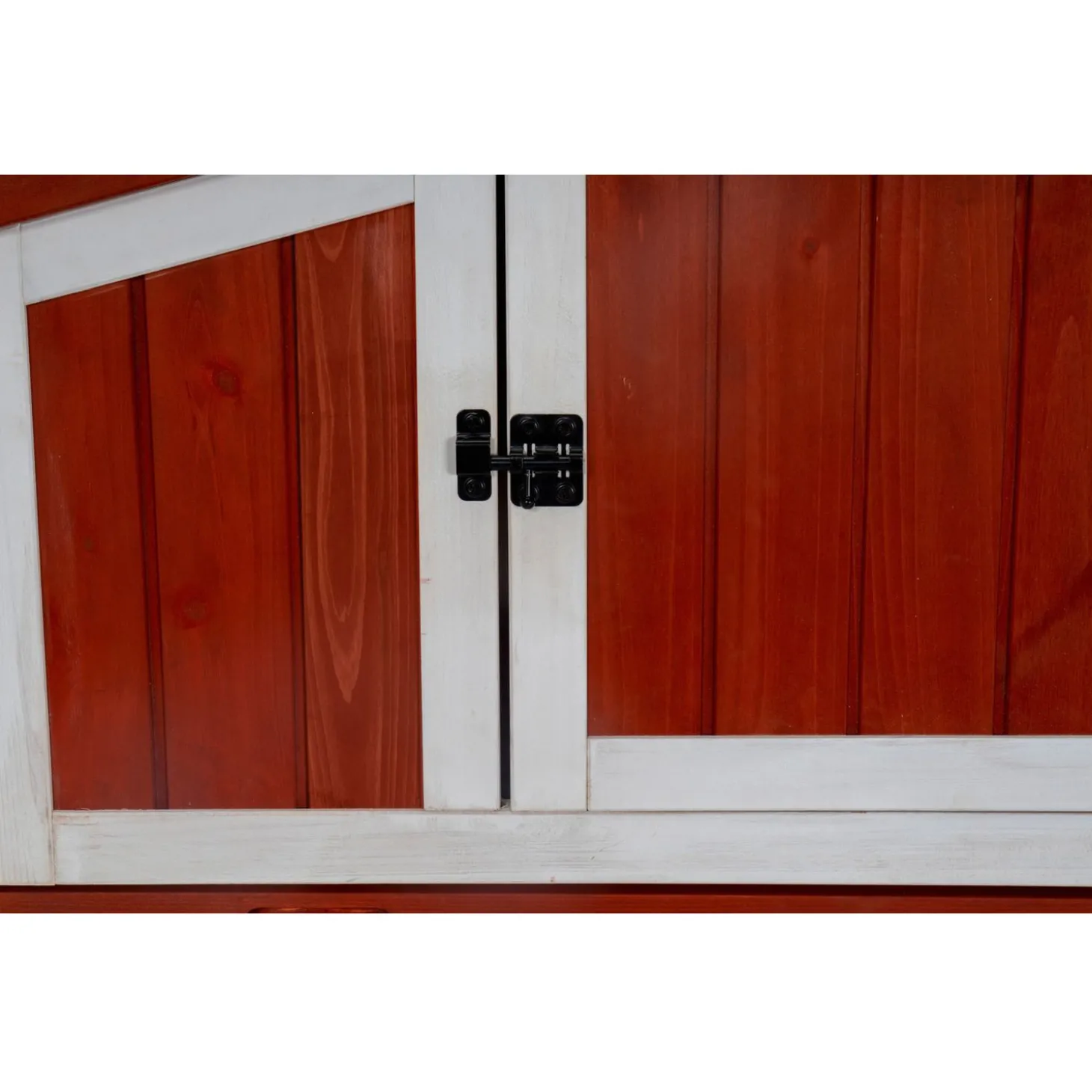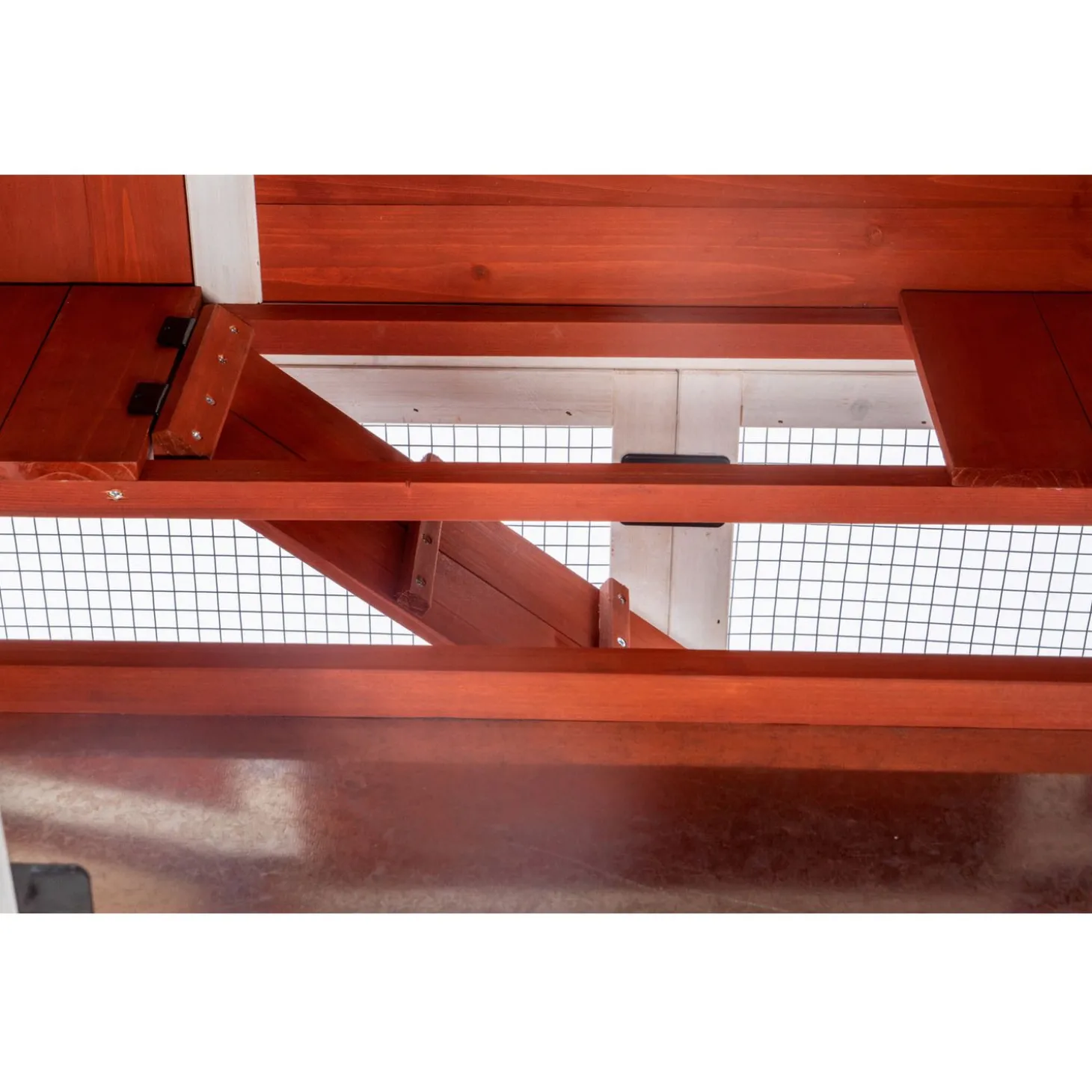 Konijnenhok Hazel heeft aan afmeting van 141x67x112 cm en is rood met wit.