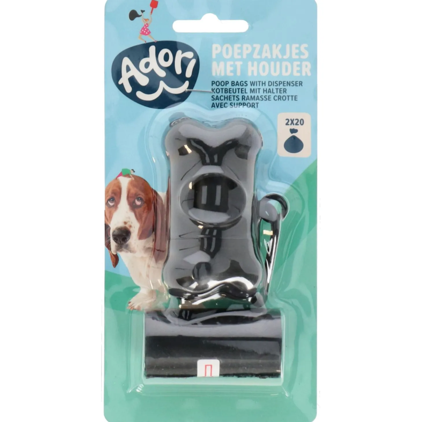 Hoewel een hond veel plezier en vreugde met zich meebrengt, hoort het opruimen van de ontlasting er helaas ook bij. Met deze Poepzakjes Met Houder Botje van Adori kan je in ieder geval met een leuke houder in de vorm van een botje rondlopen. Dit product bevat een poepzakjeshouder die je met een haakje kan bevestigen aan je looplijn. Daarnaast krijg je 2 rolletjes met 20 poepzakjes die in de houder passen.