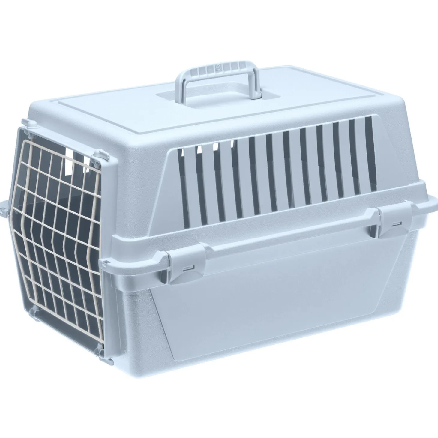 De box bevat een stevig deurtje van geplastificeerd staal, verder kan je de box open en dicht doen dankzij de zijdelingse veerklemmen. De ventilatieroosters zorgen ervoor dat je dier genoeg frisse lucht binnenkrijgt en dat hij om zich heen kan kijken. Bovenop zit een handvat om het mandje mee te dragen.