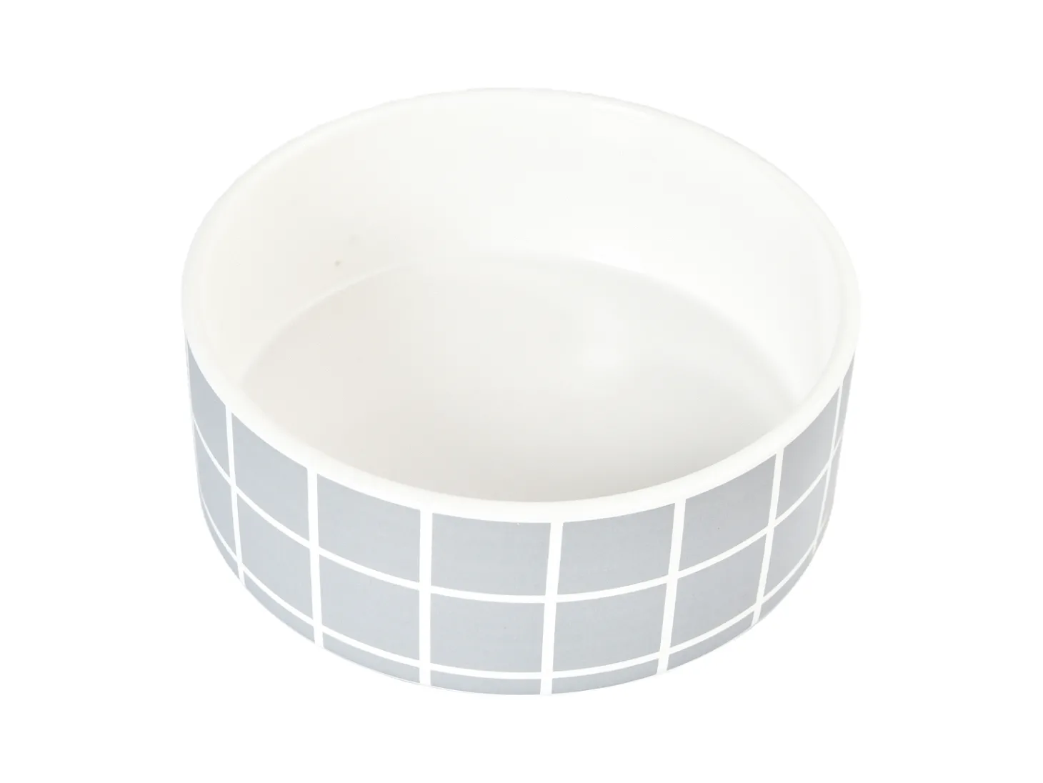 De Voerbak Nino van Adori is een keramieken voer- of waterbak voor je viervoeter. De bak is wit van kleur met een grijs blokkenpatroon aan de buitenkant.