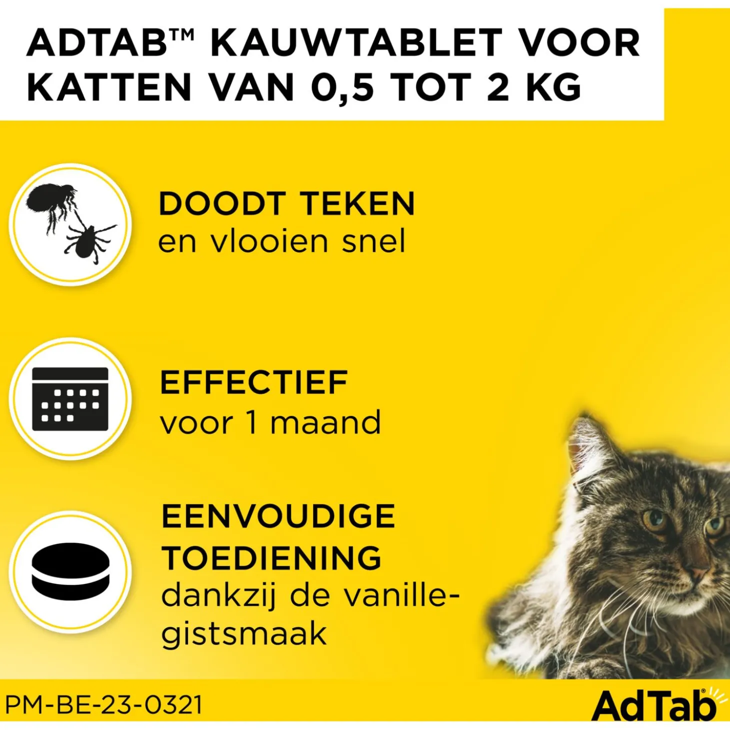 - Geschikt voor katten en kittens:AdTabTM is geschikt voor katten en kittens van alle leeftijden en gewichten.