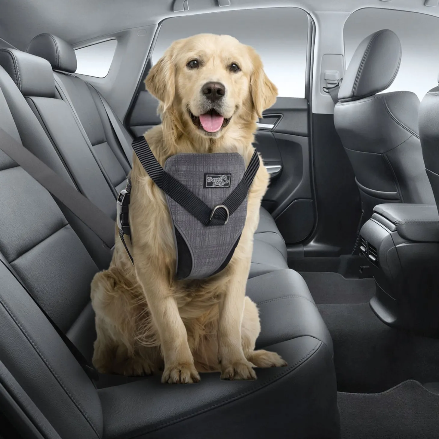 De autogordel heeft een comfortabele pasvorm dankzij de zachte padding aan de binnenzijde. Ook is het harnas makkelijk om te doen. Om trekken tijdens het wandelen te voorkomen, kan je gebruik maken van de extra D-ring op de borst.