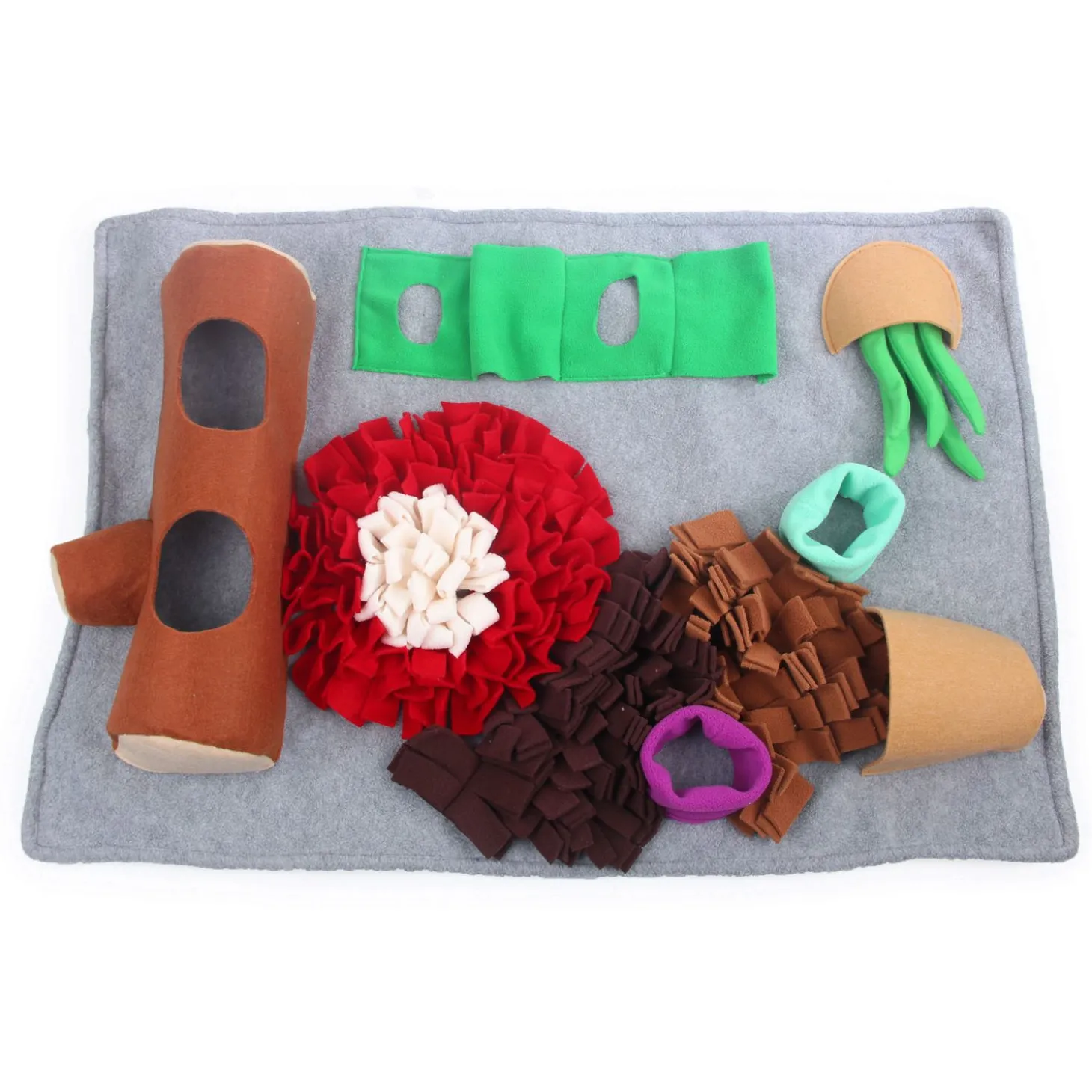 Een snuffelmat voorkomt verveling bij je dier en moedigt je huisdier aan om te experimenteren en te leren. Verstop brokjes of de favoriete snack van je dier tussen de fleecerepen en andere verstopplekken. Vervolgens moet je viervoeter moeite doen om het lekkers te vinden. Je kan de snuffelmat gebruiken als traktatie, maar ook de normale maaltijd kan erin verstopt worden. Ruim de snuffelmat op wanneer het spel is afgelopen, zo blijft hij spannend voor je dier.