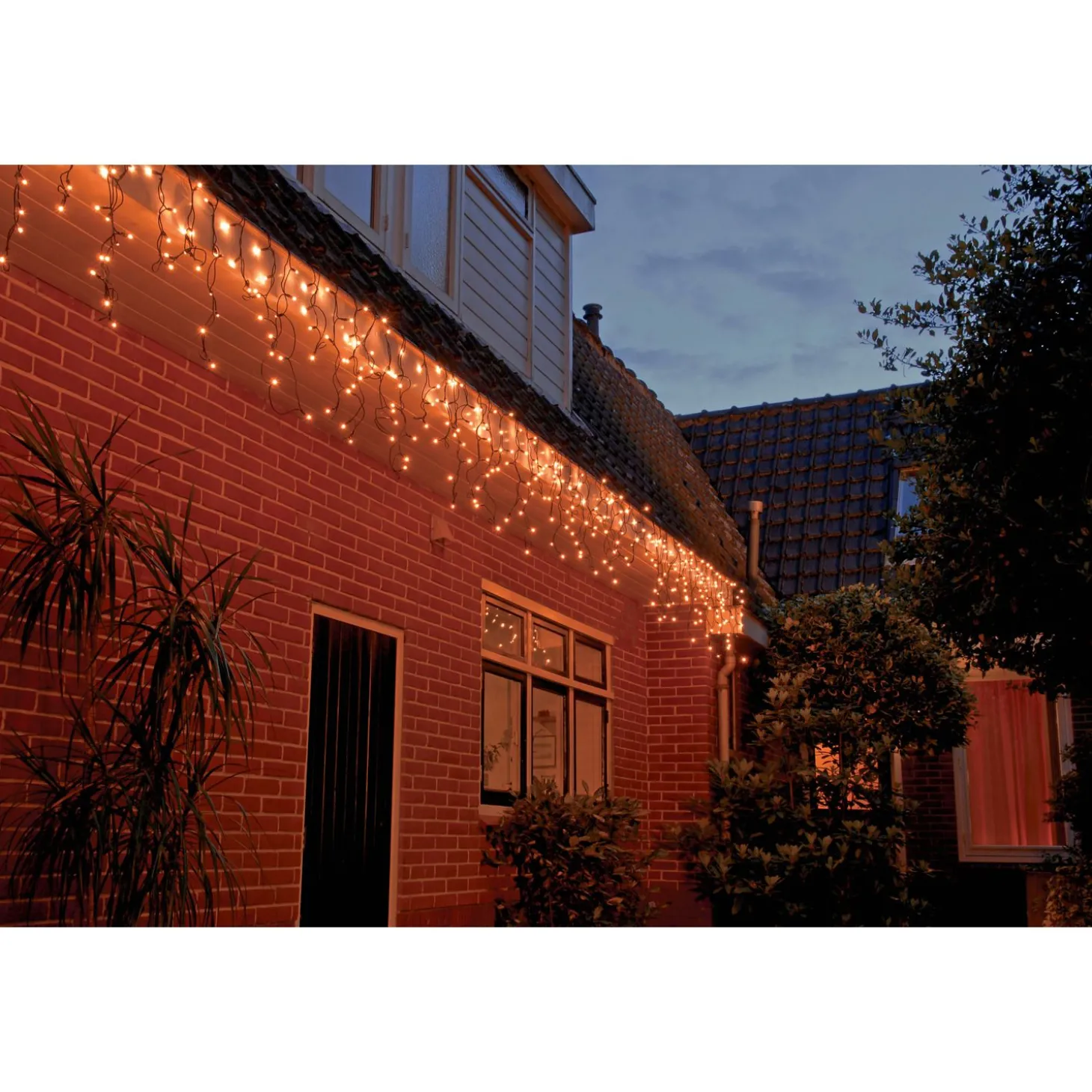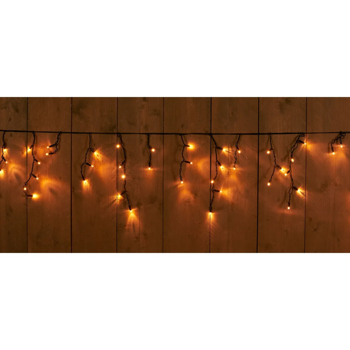 Dit 4 meter lange snoer bestaat uit 100 ledlampjes hangende aan 30 strengen die een warm, geel licht uitstralen. De zwarte kabel is gemaakt van rubber. De ‘pegels’ hangen maximaal 35 cm naar beneden.