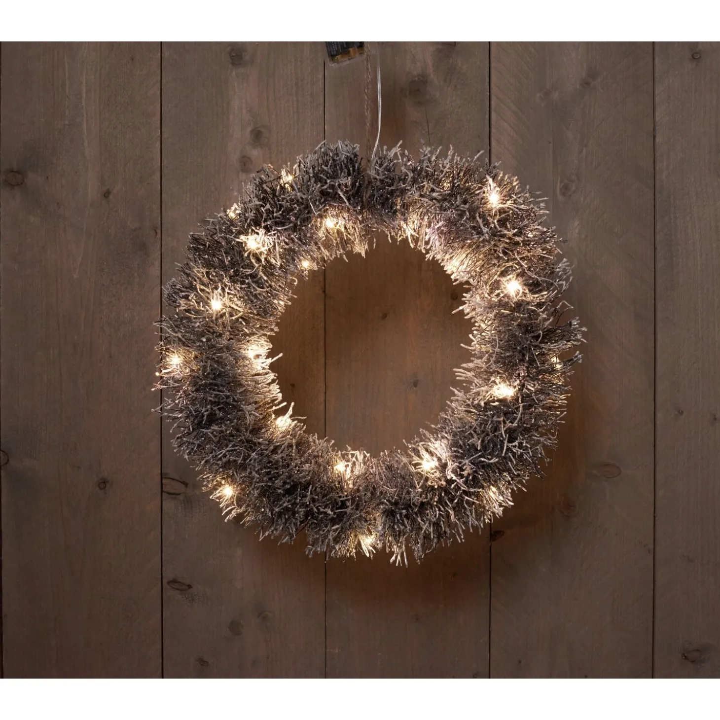 Rotan krans zwart/sneeuw– 30 lampjes – 40 cm hoog.