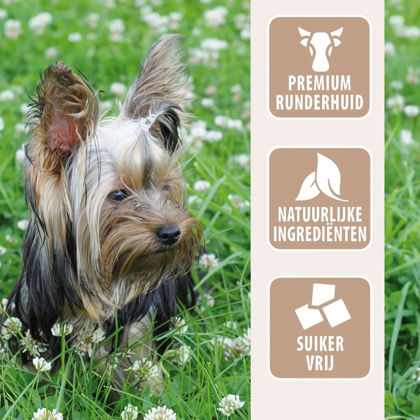 Let op:iedere hond heeft zijn of haar eigen kauwgedrag. Houd daarom altijd jouw hond in de gaten bij het geven van (kauw)snacks.