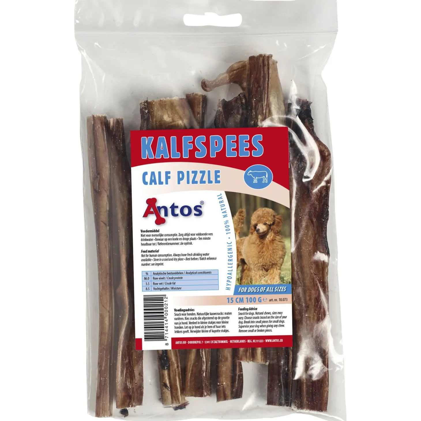 Kalfspees van Antos is verkrijgbaar in 100g, +/- 15cm