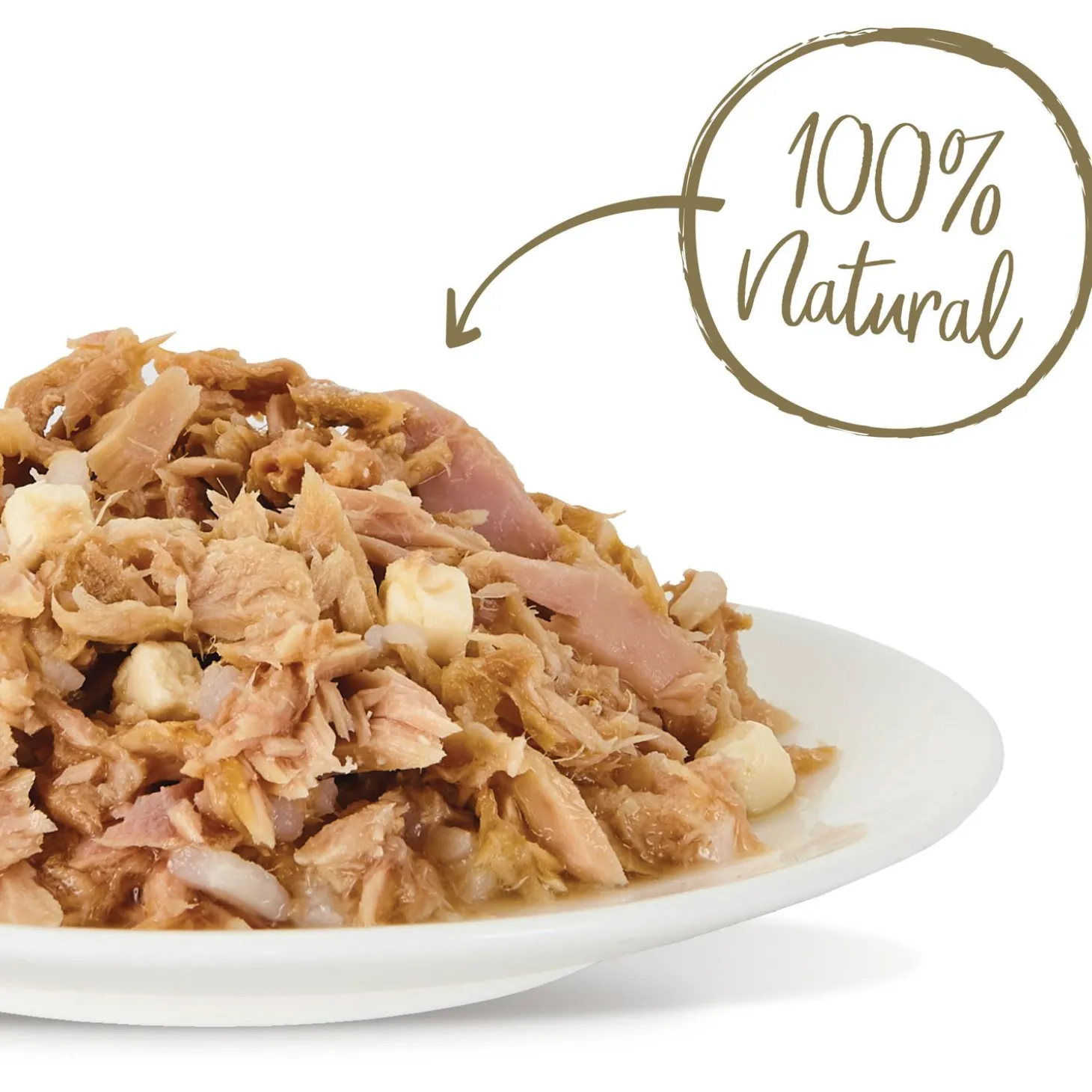 | Samenstelling | Tonijn Fillets 70%, Vis Bouillon 23%, Kaas 6% en Rijst 1%. |