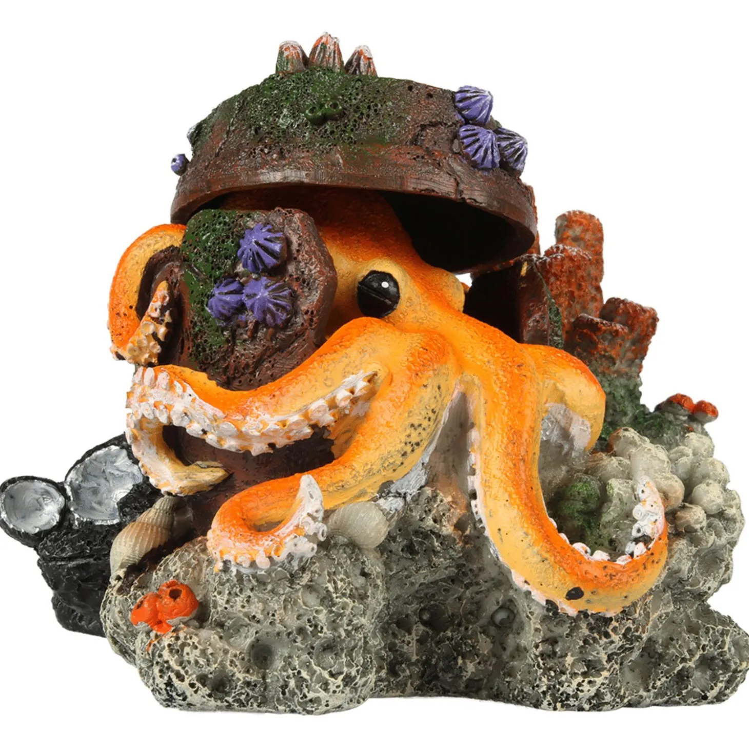 Het ornament is gemaakt van polyresin, dit is 100% gifvrij en geheel veilig voor je vissen, planten en water. Je kan de decoratie in zowel zoet- als zoutwateraquaria plaatsen. Kleurveranderingen zijn na enige tijd niet uit te sluiten. Spoel het ornament voor gebruik voorzichtig af met warm water (géén zeep e.d. gebruiken, enkel afspoelen).