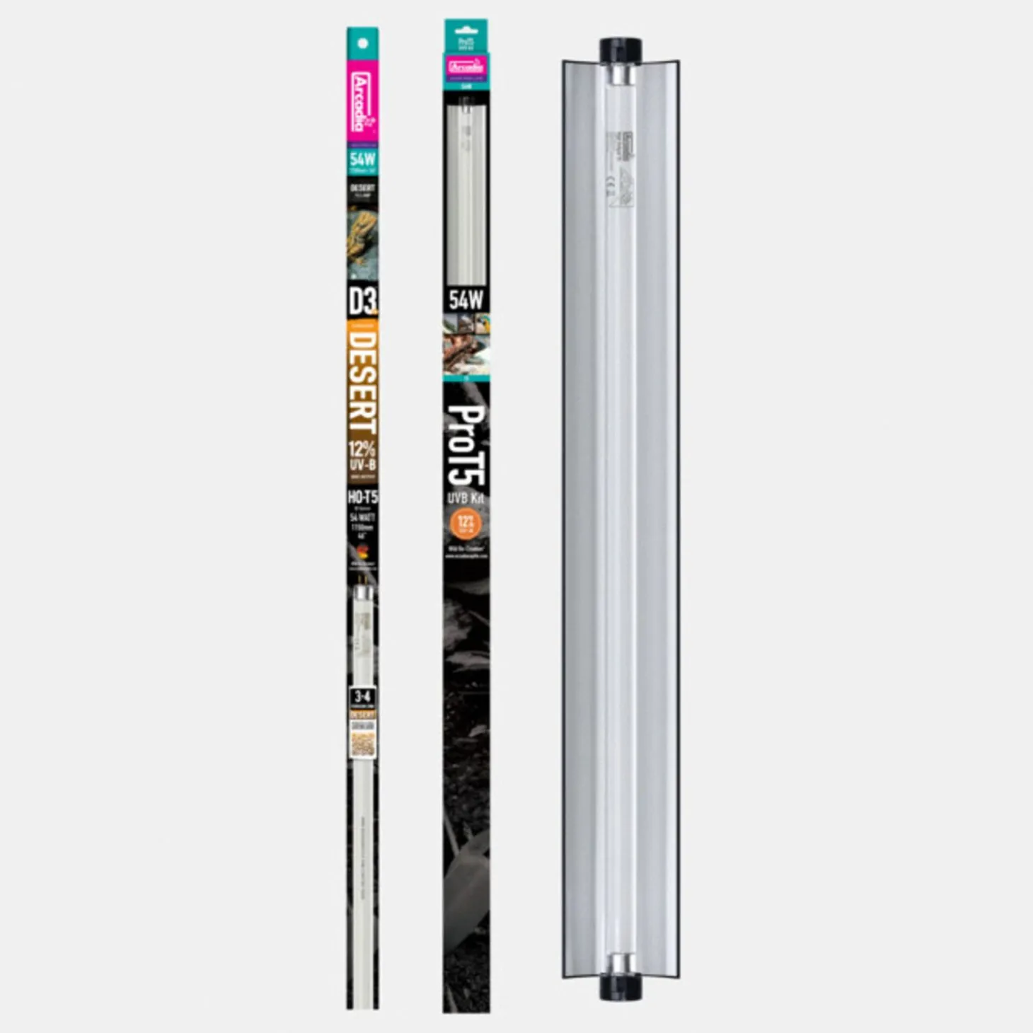 - T5 is de beste methode om UV-straling aan te bieden aan uw reptielen. Met de efficiënte Arcadia T5 lampen voorziet u uw dieren 12 maanden van UV-B en u kunt tot 10 van deze units aan elkaar koppelen door middel van de bijgeleverde link kabel.