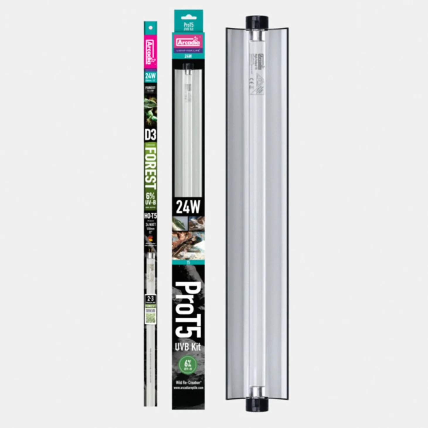 - T5 is de beste methode om UV-straling aan te bieden aan uw reptielen. Met de efficiënte Arcadia T5 lampen voorziet u uw dieren 12 maanden van UV-B en u kunt tot 10 van deze units aan elkaar koppelen door middel van de bijgeleverde link kabel.