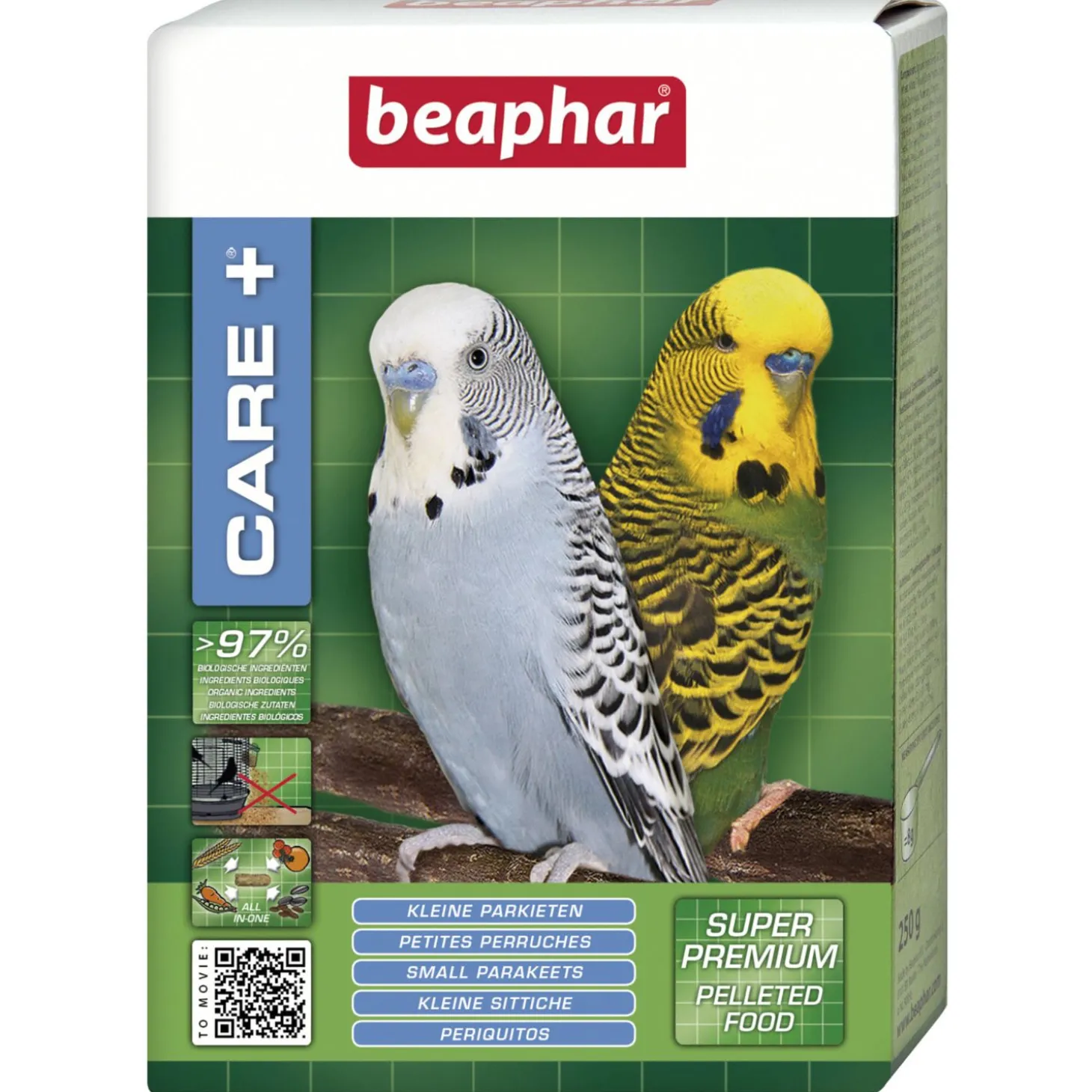 | Aanbeveling | Voedingsadvies: Indien de vogel niet gewend is aan pellets, moet de omschakeling geleidelijk gebeuren. Gebruik hiervoor de Care+ Omschakelingstabel die als bijsluiter in de doos is toegevoegd. Dosering voor kleine parkieten is 8 gram per dag = 1 maatschep. Dit zijn richtlijnen. De werkelijke hoeveelheid wordt bepaald door de grootte van de vogel, activiteit, huisvesting, temperatuur en weersomstandigheden. Controleer regelmatig het gewicht van de vogel. Zorg altijd voor voldoende vers drinkwater. Care+ is een volledig voer. Echter als welkome aanvulling en voor de afleiding kan dagelijks een stukje fruit of groente worden gegeven. |