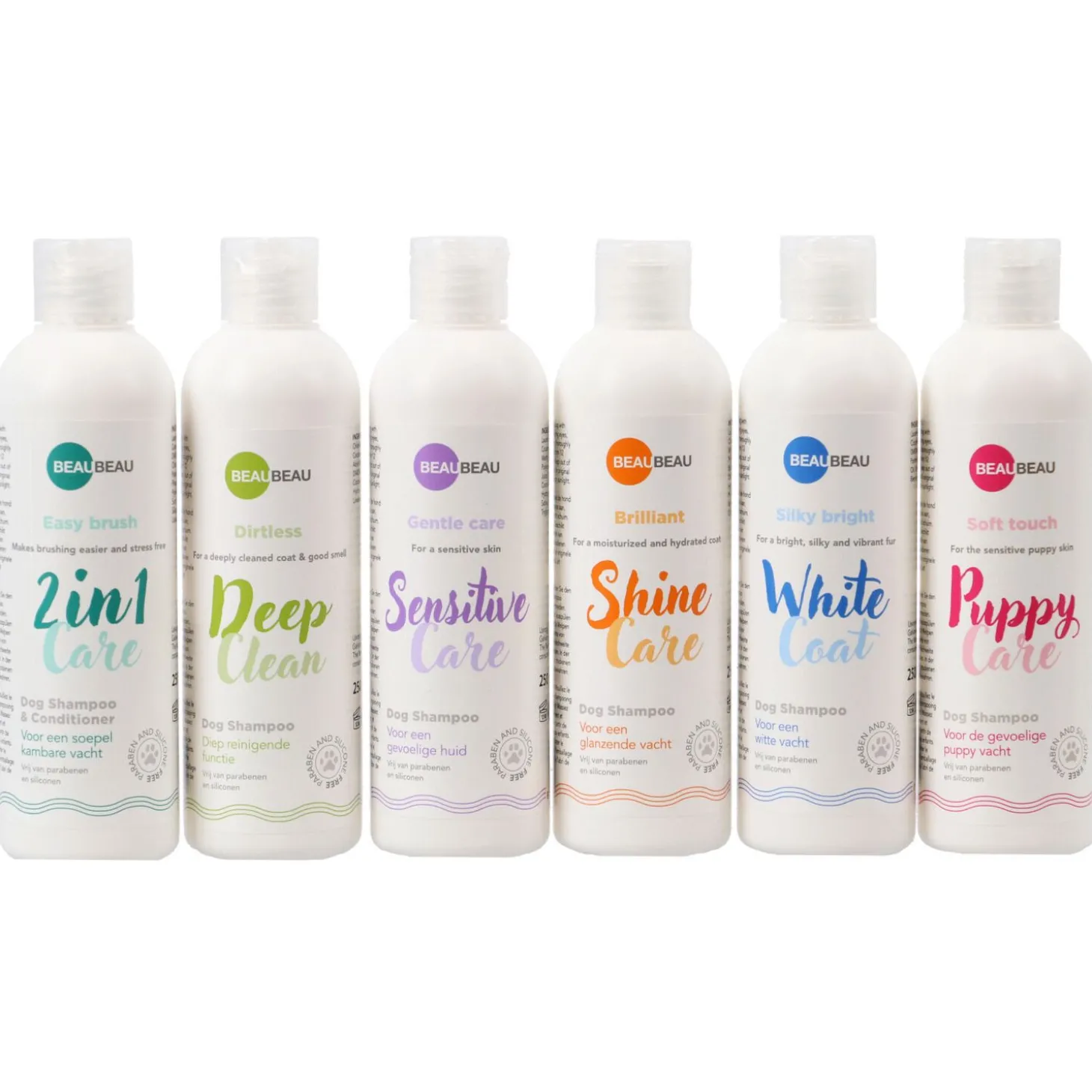 Deze hoogwaardige shampoo biedt alles wat je zoekt in één fles: grondige reiniging, makkelijk borstelen en optimale verzorging. De formule zonder parabenen en siliconen is veilig voor regelmatig gebruik, terwijl de toegevoegde vitamines de vacht van je hond in topconditie houden. Geef je hond de verzorging die hij verdient en maak vandaag nog kennis met BeauBeau 2-in-1 Shampoo & Conditioner!