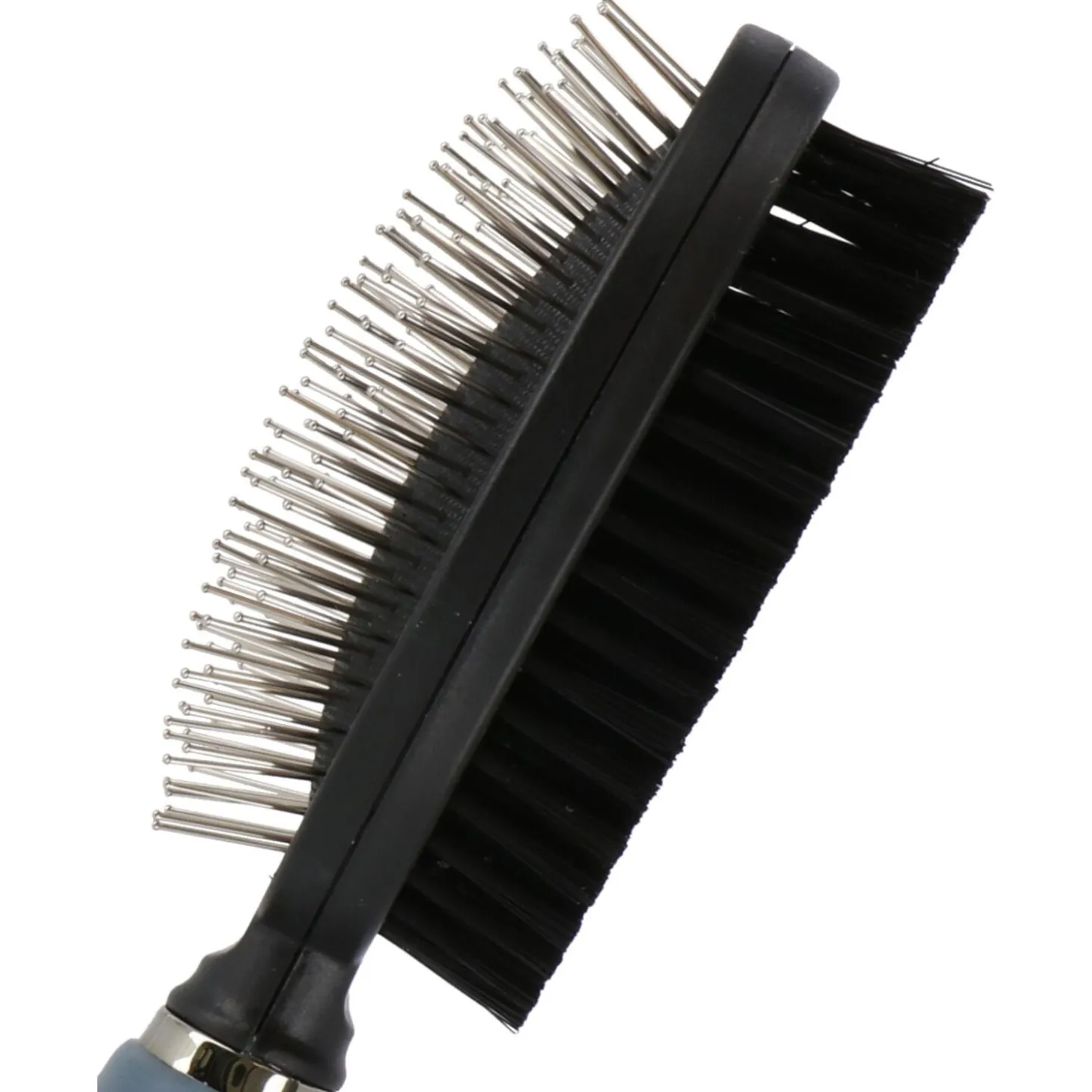 - 2-in-1 borstel met pin- en nylonzijde voor volledige vachtverzorging