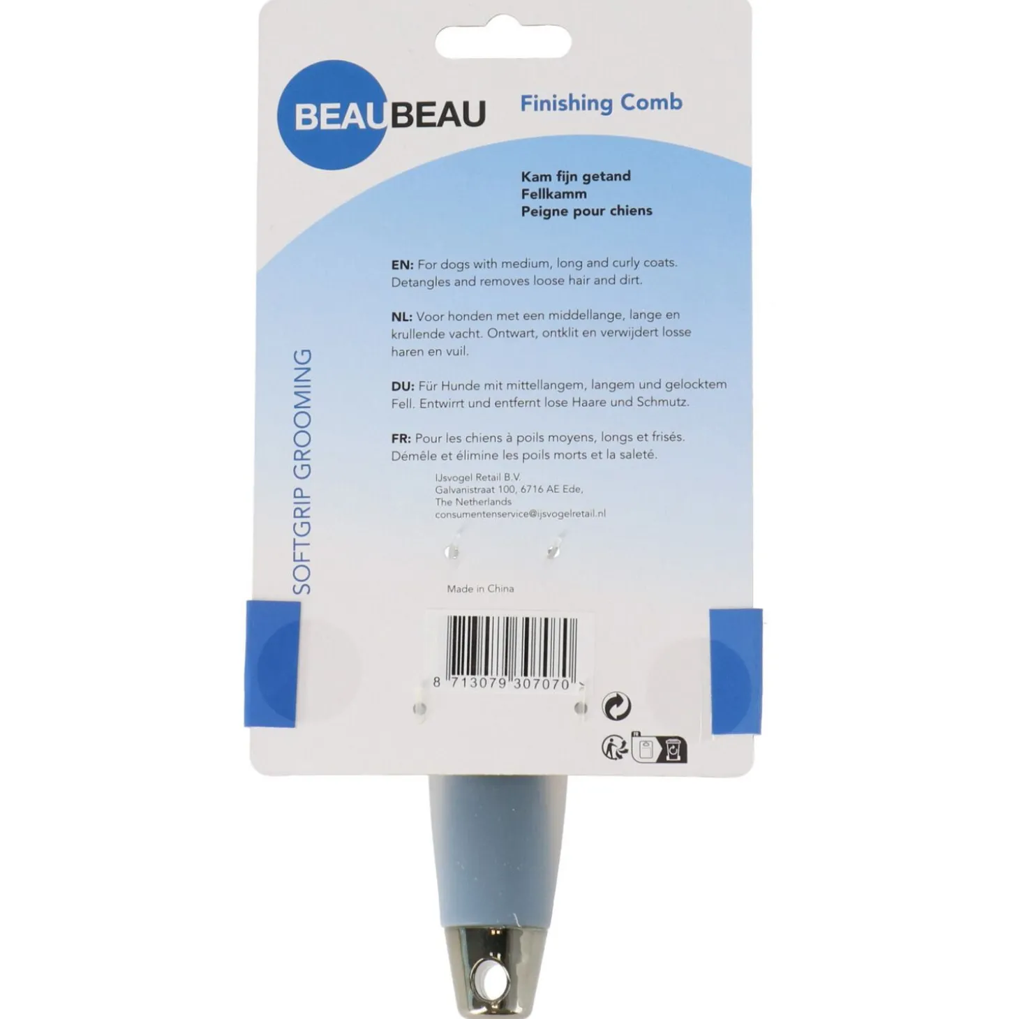 Deze hoogwaardige kam vormt de perfecte aanvulling op je vachtverzorgingsroutine. Door na het borstelen af te sluiten met deze kam, wordt de vacht zichtbaar voller en krijgt deze een prachtige glans. Het ergonomische softgrip handvat verzekert een prettige gebruikservaring, terwijl de duurzame metalen tanden jarenlang meegaan. Geef de vacht van je hond de professionele verzorging die hij verdient met de BeauBeau Dubbelzijdige hondenkam!