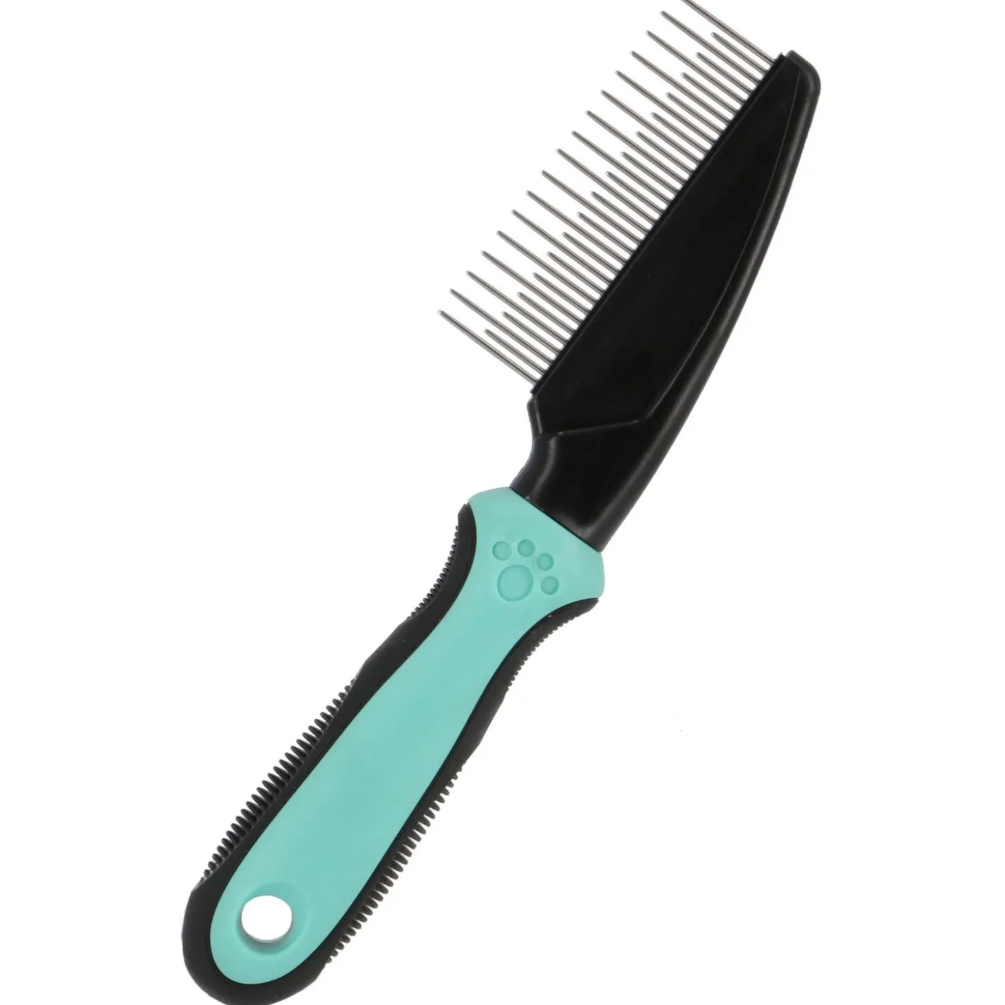 Deze innovatieve kam is speciaal ontworpen om het ontwarren van je hond’s vacht aangenamer te maken voor jullie beiden. Dankzij de unieke roterende tanden glijdt de kam moeiteloos door de vacht zonder pijnlijk trekken, zelfs bij hardnekkige klitten. Het ergonomische turquoise handvat zorgt voor een comfortabele grip en optimale controle tijdens het kammen. De kam verwijdert effectief losse haren en vuil, terwijl de roterende tanden de vacht ontwarren zonder de huid te irriteren of haren af te breken.