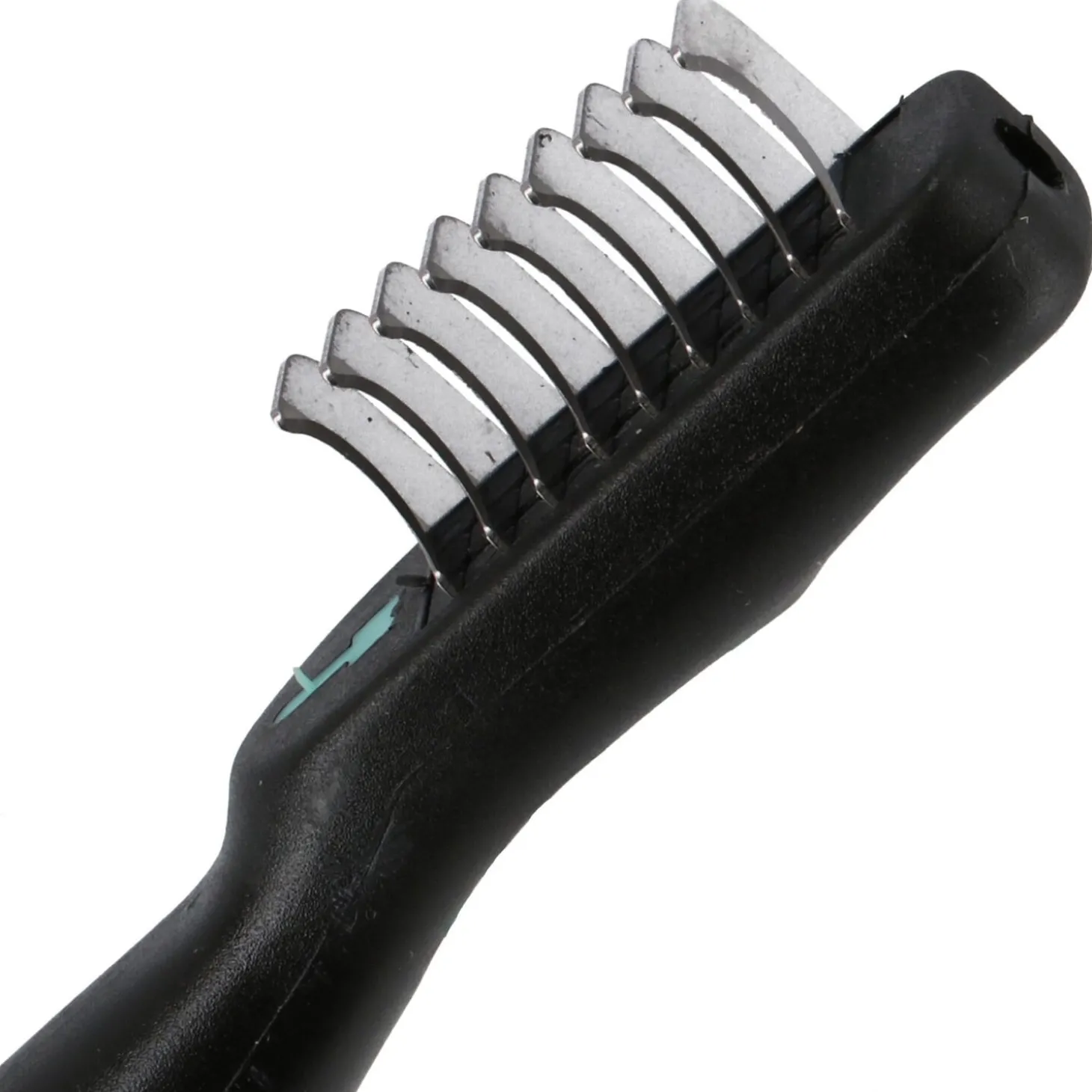 - Scherpe, afgeronde mesjes die veilig klitten doorsnijden zonder de huid te beschadigen