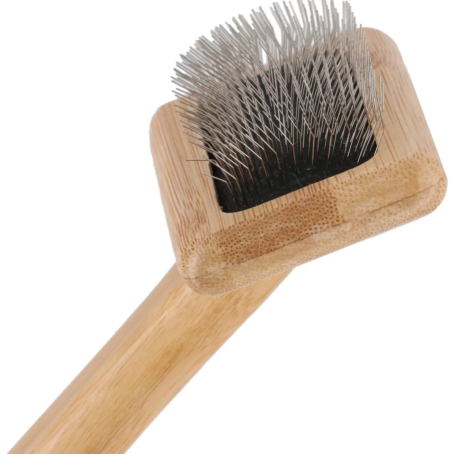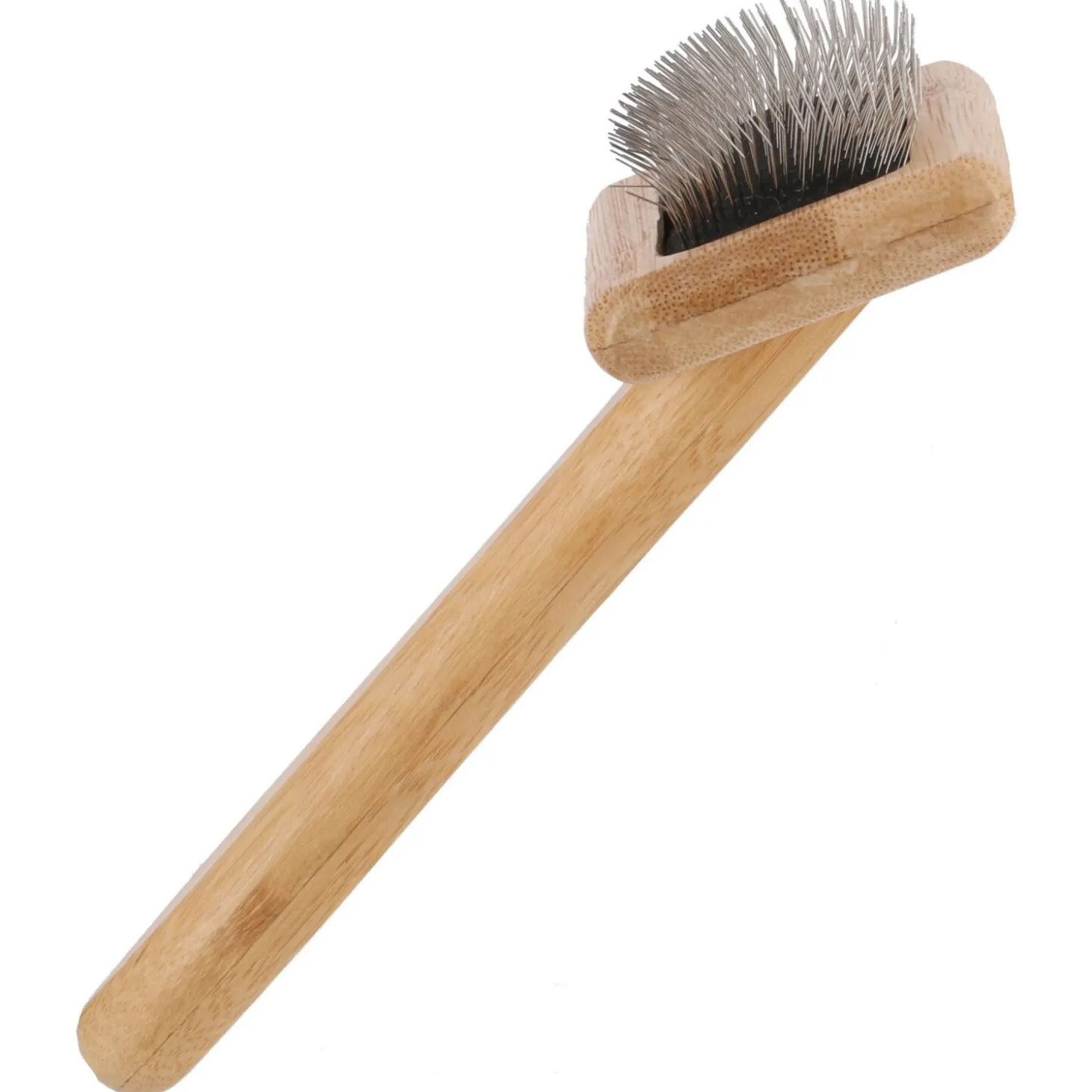 Deze professionele slickerborstel is ontworpen voor een grondige maar zachte vachtverzorging. De speciaal ontwikkelde gebogen draadharen bereiken moeiteloos de ondervacht, waar de meeste klitten beginnen. Door de uitgekiende constructie verwijder je effectief losse haren en vuil, terwijl het ergonomische bamboe handvat zorgt voor een prettige controle tijdens het borstelen. Zo wordt de dagelijkse vachtverzorging een aangename ervaring voor jou en je hond.